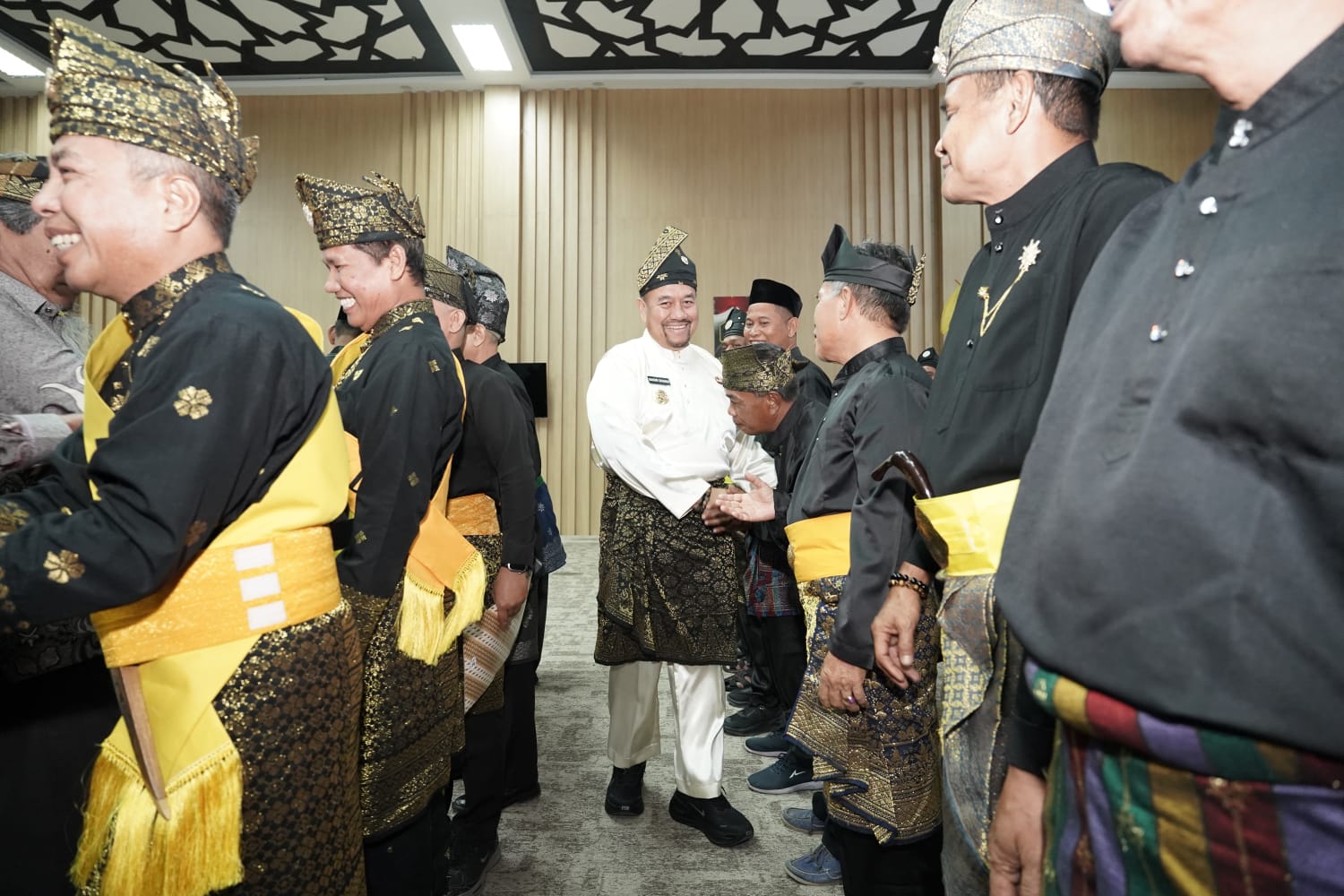 BATU BARA - Bupati Batu Bara H. Baharuddin Siagian, S.H., M.Si., menyambut secara resmi kedatangan Wakil Menteri Agama Republik Indonesia Dr. KH. Romo R. Muhammad Syafi'i, S.H., M.Hum., di Kantor Bupati Batu Bara, Kecamatan Lima Puluh, Kamis (15/1...