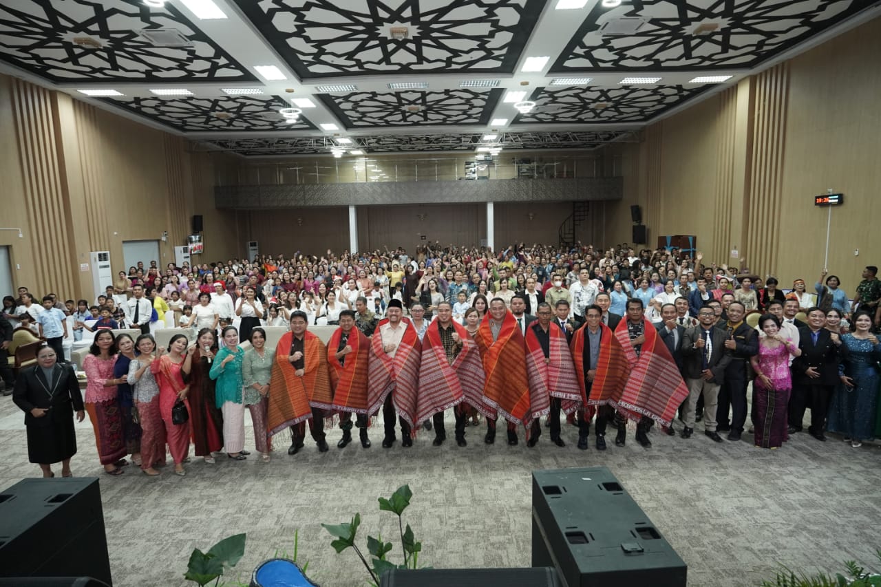 BATU BARA - Bupati Batu Bara H. Baharuddin Siagian, S.H., M.Si., bersama Wakil Bupati Syafrizal, S.E., M.AP., menghadiri Perayaan Natal Aparatur Sipil Negara (ASN) yang diselenggarakan oleh Forum Komunitas Kristen Pemerintah Kabupaten Batu Bara, d...