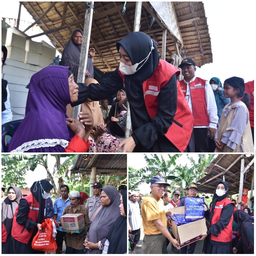 BATU BARA - Badan Koordinasi Kegiatan Kesejahteraan Sosial (BK3S) Kabupaten Batu Bara menyerahkan bantuan sandang dan pangan untuk warga yang rumahnya hancur diterjang ombak pasang air laut di Dusun Kuala Sipare dan Dusun Pematang Eru, Desa Medang...