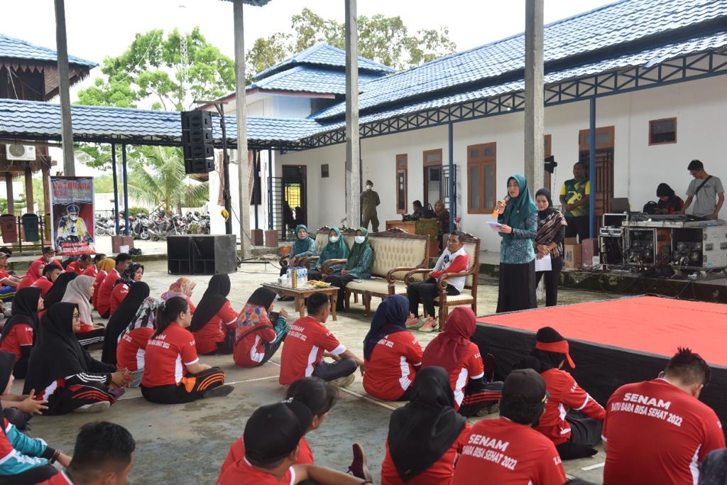 BATU BARA - Ketua Tim Penggerak Pemberdayaan dan Kesejahteraan Keluarga (TP PKK) Kabupaten Batu Bara Ny. Hj. Maya Indriasari Zahir, mengikuti kegiatan pembukaan sosialisasi dan pelatihan senam tahun 2022 yang digelar di halaman Kantor Dinas Pemuda...