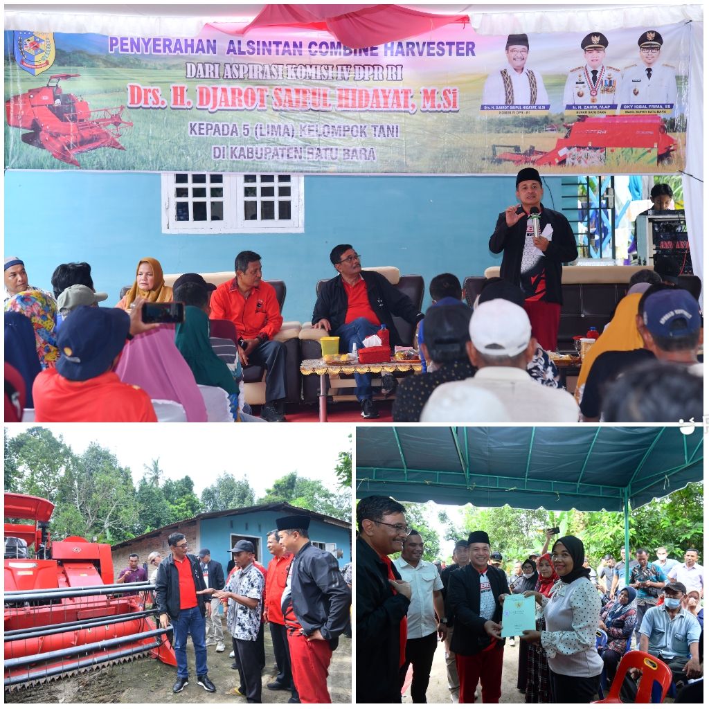 BATU BARA - Bupati Batu Bara Ir. H. Zahir, M.AP., bersama Anggota Komisi IV DPR RI Drs. Djarot Saiful Hidayat, M.Si., melakukan peninjauan bantuan alat mesin pertanian pra panen combine harvester di Desa Perkebunan Sei Balai, Kecamatan Sei Balai,...