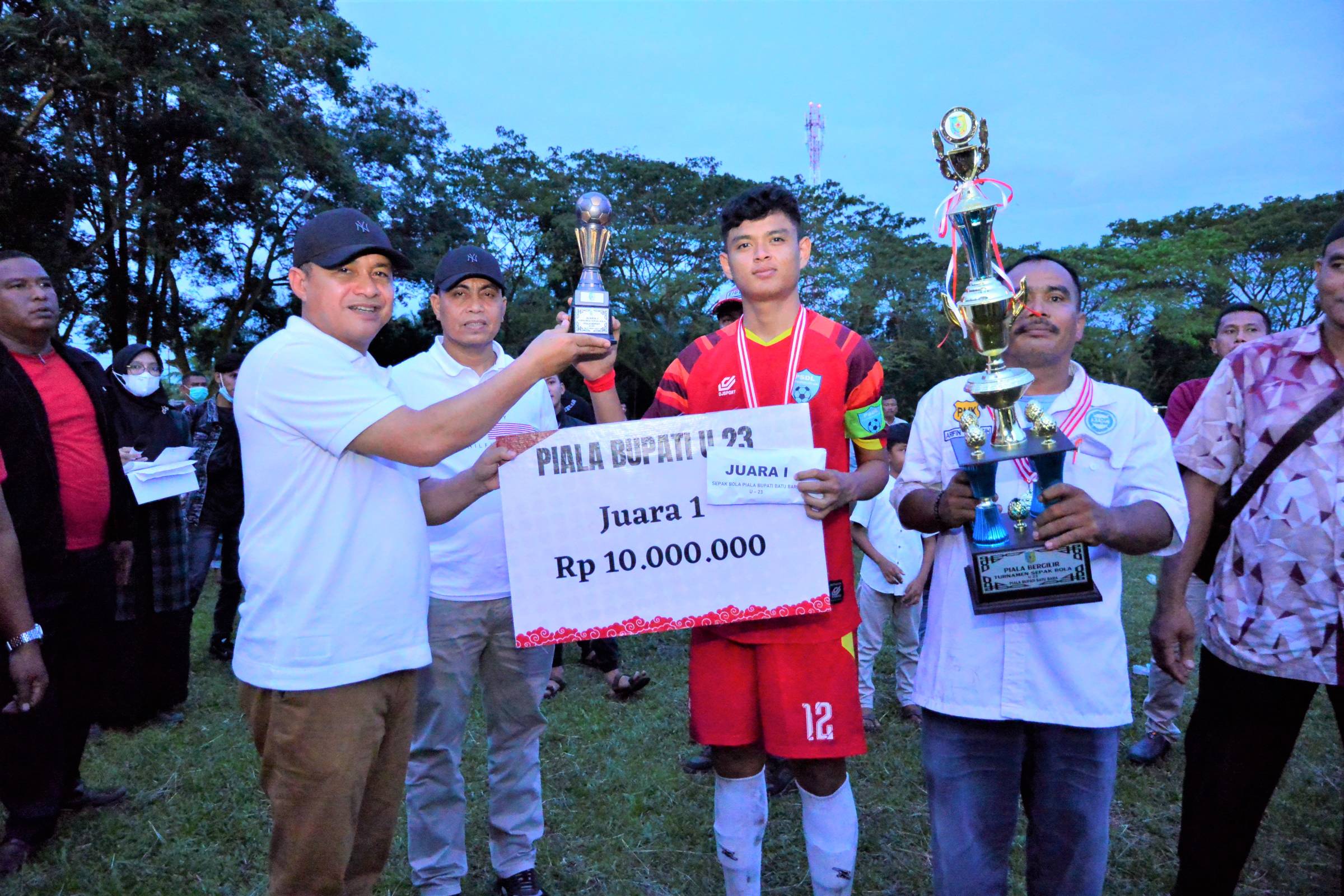 Batu Bara - Kejuaraan Sepak Bola Piala Bupati Batu Bara CUP U-17 dan U-23 Tahun 2022 yang diikuti sebanyak 48 kesebelasan resmi ditutup oleh orang nomor satu di Batu Bara Ir. H. Zahir, M.AP. Kegiatan berlangsung di Lapangan Sepak Bola PT. PP Lonsu...