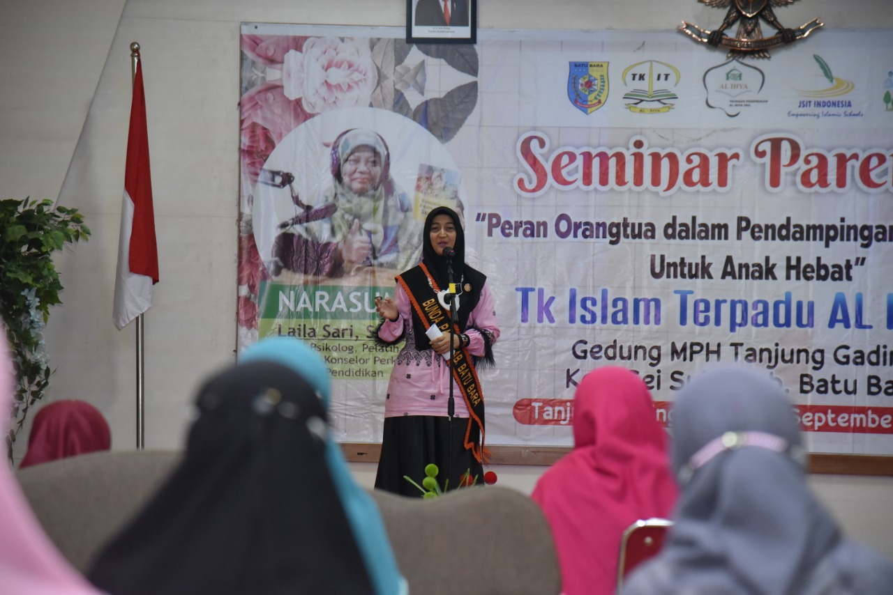 BATU BARA - Guna meningkatkan pola asuh orang tua terhadap anak, Bunda Pendidikan Anak Usia Dini (PAUD) Kabupaten Batu Bara Ny. Hj. Maya Indriasari Zahir S.E., menghadiri seminar parenting yang digelar oleh TK Islam Terpadu Al Ihya Tanjung Gading...