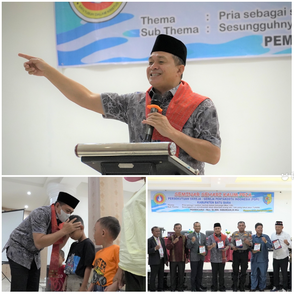 BATU BARA - Bupati Batu Bara Ir. H. Zahir, M.AP., mendukung peningkatan peran serta pria dalam keluarga. Hal tersebut disampaikan Bupati Zahir saat menghadiri Seminar Kaum Pria Persekutuan Gereja - Gereja Pentakosta Indonesia (PGPI) di Kabupaten B...