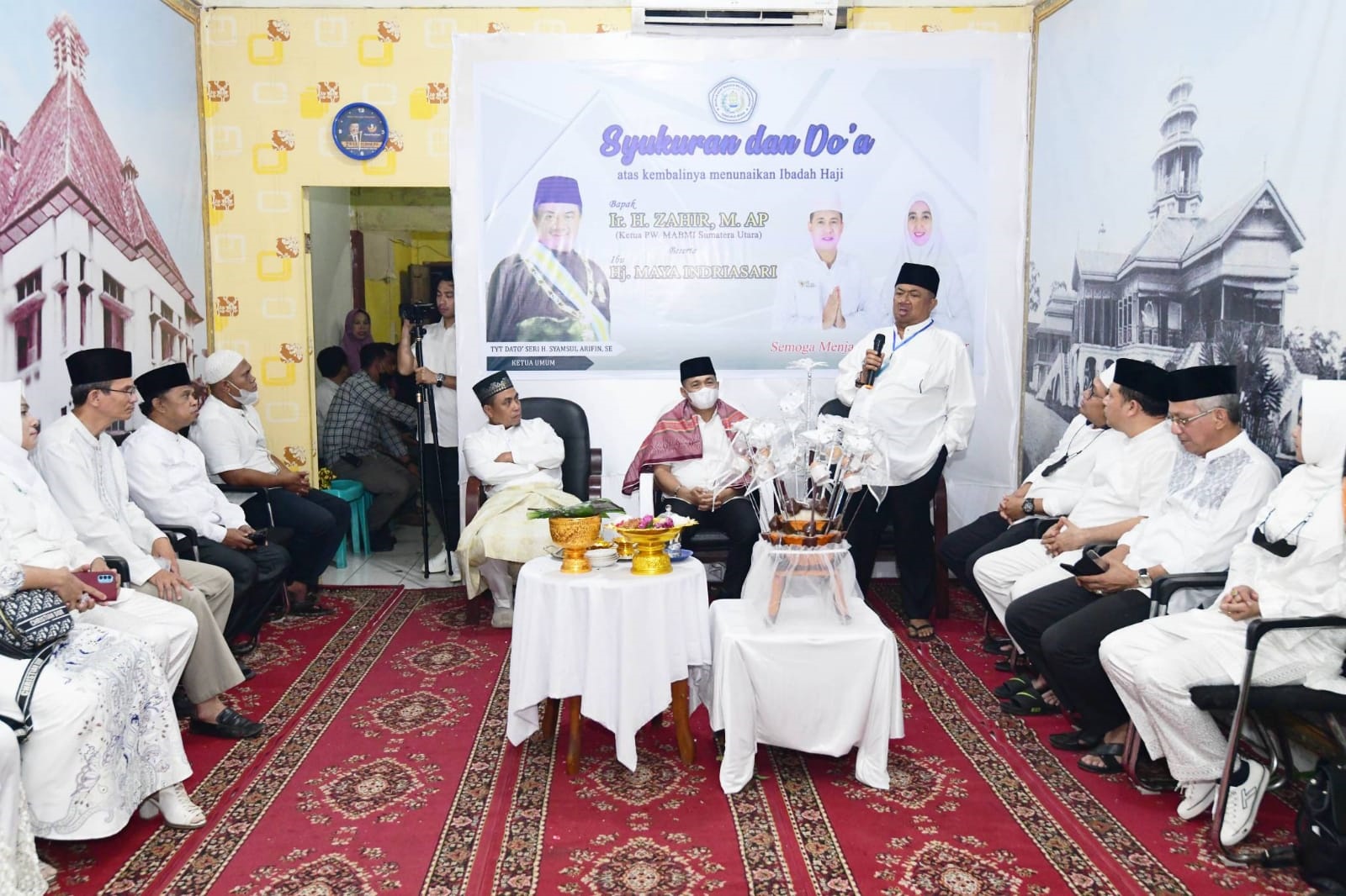 MEDAN - Pengurus Besar Majelis Adat Budaya Melayu Indonesia (PB MABMI) menggelar syukuran dan tepung tawar untuk Ketua Pengurus Wilayah (PW) MABMI Sumut yang juga Bupati Batu Bara Ir. H. Zahir, M.AP, setelah pulang dari menunaikan ibadah haji di T...