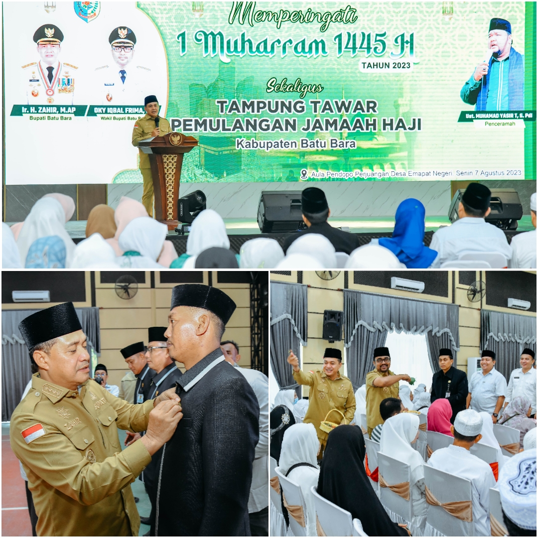 BATU BARA - Pemerintah Kabupaten Batu Bara menggelar peringatan tahun baru islam 1 Muharram 1445 H yang digelar di Aula Pendopo Perjuangan, Desa Empat Negeri, Kecamatan Datuk Lima Puluh, Senin, (07/08/2023).