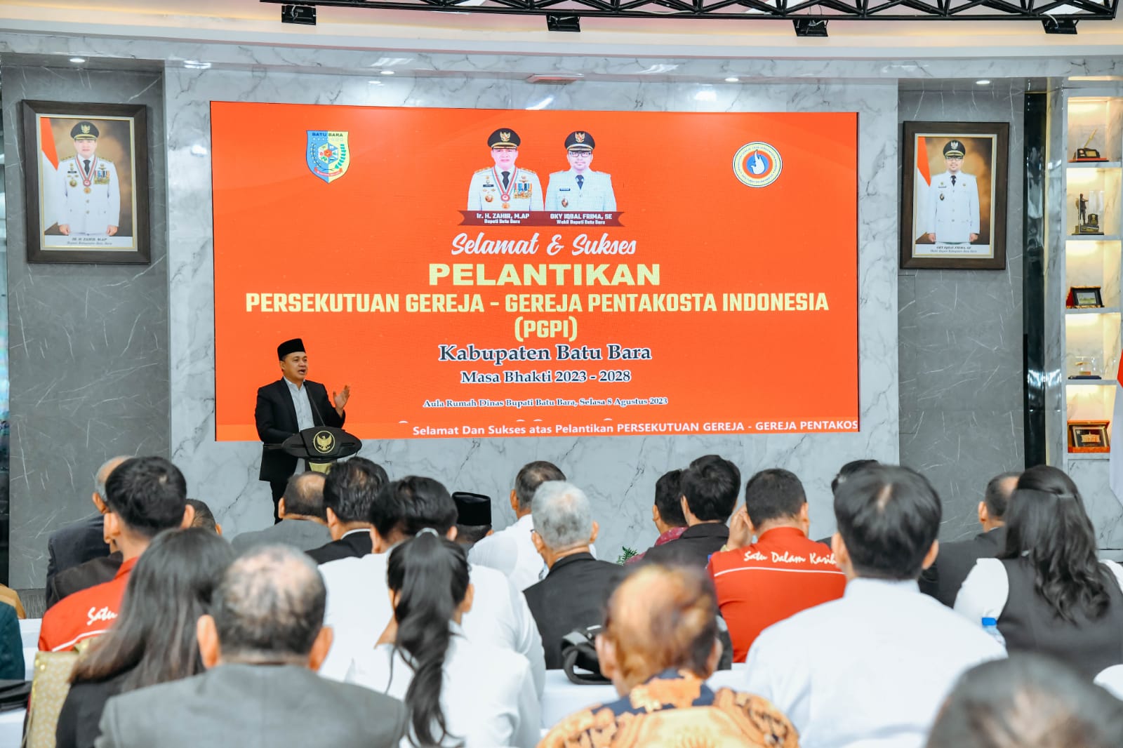 BATU BARA - Bupati Batu Bara Ir. H. Zahir, M.AP., menghadiri pelantikan pengurus Persekutuan Gereja-gereja Pentakosta di Indonesia (PGPI) Kabupaten Batu Bara periode 2023-2028 yang digelar di aula Rumah Dinas Bupati,Komplek Perumahan Inalum, Tanju...
