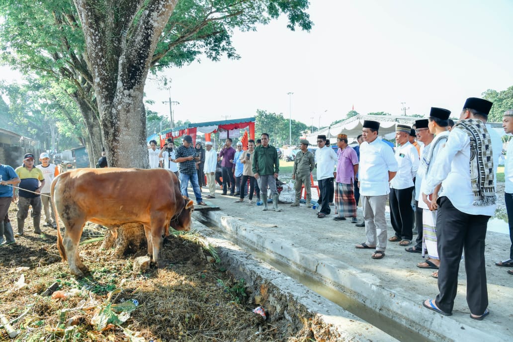 BATU BARA - Sehari jelang perayaan Idul Adha 10 Dzulhijjah 1444 H/2023 M, Pemerintah Kabupaten Batu Bara menyalurkan hewan kurban berupa 40 ekor sapi di Lapangan Blok 8, Kelurahan Lima Puluh Kota, Kecamatan Lima Puluh, Rabu (28/06/2023).