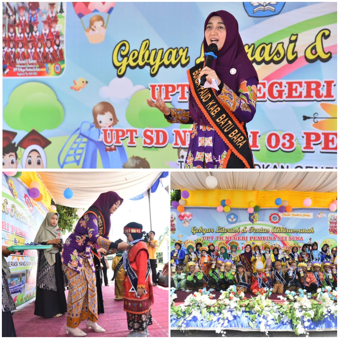 BATU BARA - Bunda Pendidikan Anak Usia Dini (PAUD) Kabupaten Batu Bara Ny. Hj. Maya Indriasari Zahir menghadiri Gebyar Literasi dan Pentas Akhirusannah di UPT TK Negeri Pembina Sei Suka dan UPT SD Negeri 03 Perkebunan Siparepare, Kecamatan Sei Suk...
