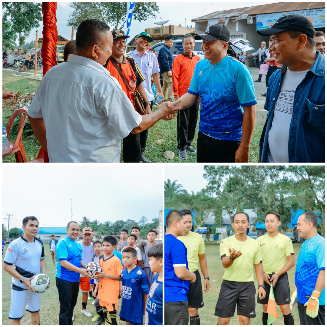 BATU BARA - Pemerintah Kabupaten Batu Bara menggelar \'fun football\' antara kesebelasan OPD Pemerintah Kabupaten Batu Bara melawan kesebelasan Pemerintah Desa Sei Bejangkar yang berlangsung di Lapangan Sepak Bola Sei Bejangkar, Kecamatan Sei Bala...