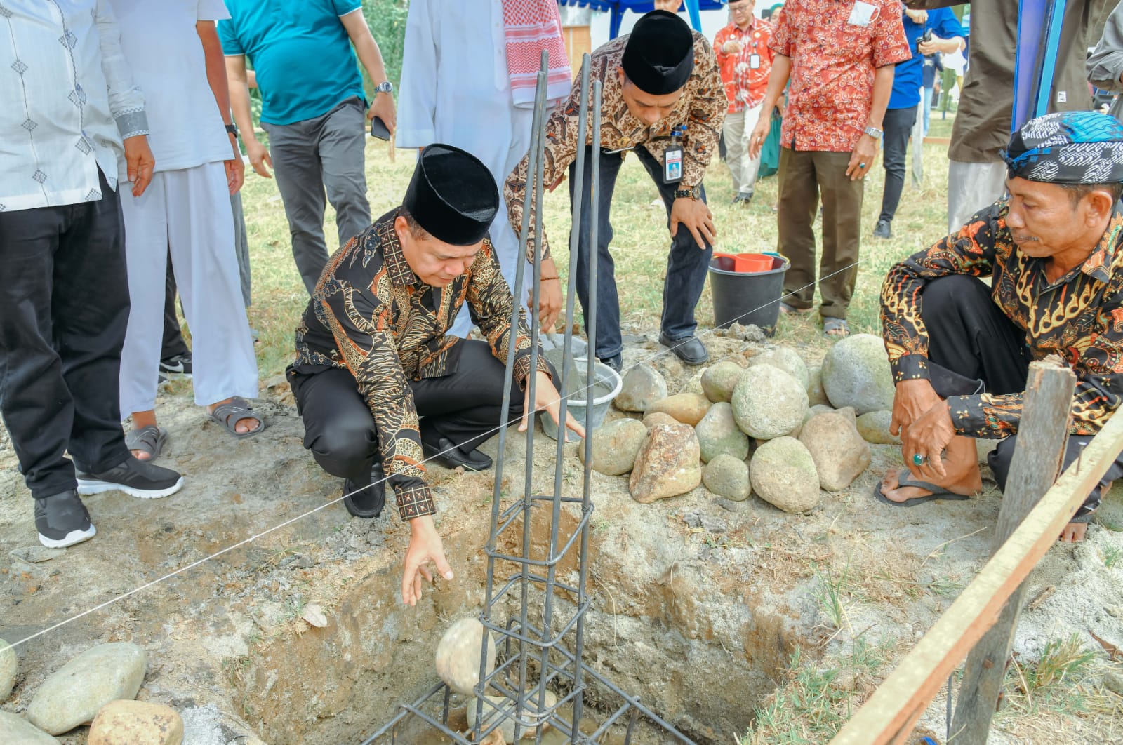 BATU BARA - Bupati Batu Bara Ir. H. Zahir, M.AP., melakukan peletakan batu pertama pembangunan Mushola H. OK Abdul Jalil yang akan berdiri di tengah Komplek Perumahan Komunitas, Desa Pulau Sejuk, Kecamatan Datuk Lima Puluh, Jum\'at (19/05/2023).