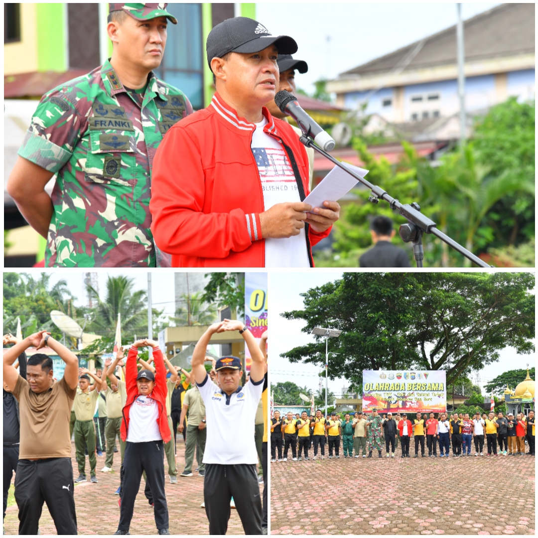BATU BARA - Guna memperkuat sinergitas dan silaturahmi yang erat antarinstansi, Pemerintah Kabupaten Batu Bara bersama TNI/Polri menggelar senam sehat bersama di halaman Mapolres Batu Bara, Kelurahan Lima Puluh Kota, Kecamatan Lima Puluh, Se...