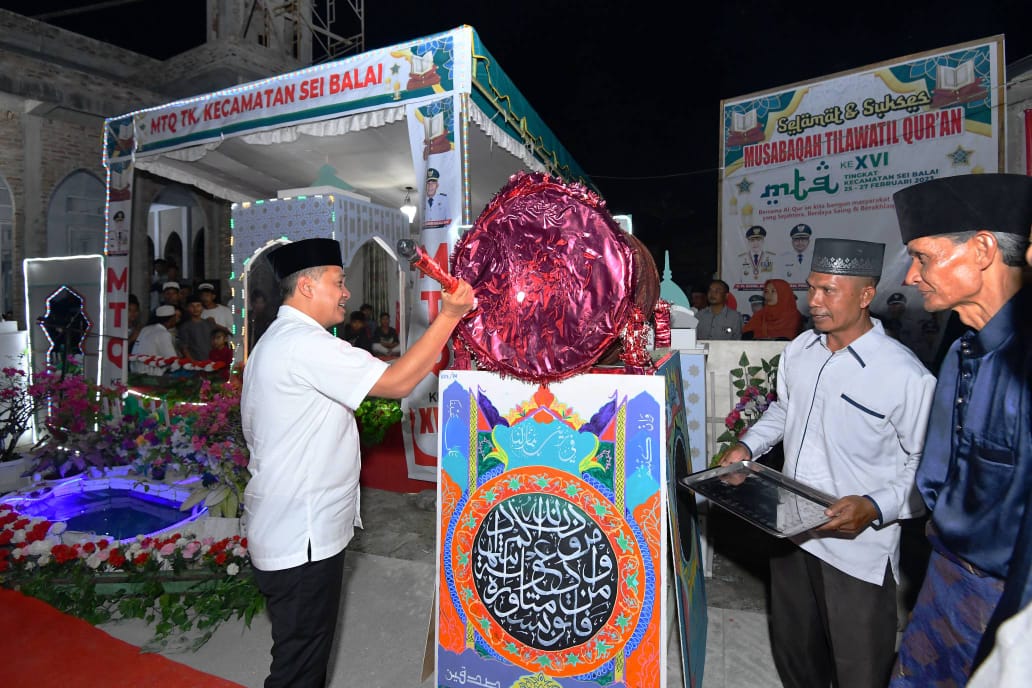 BATU BARA - Bupati Batu Bara Ir. H. Zahir, M.AP., menutup secara resmi Musabaqah Tilawatil Qur'an (MTQ) tingkat Kecamatan Sei Balai di Desa Kwala Sikasim, Sei Balai, Senin (27/02/2023) malam.