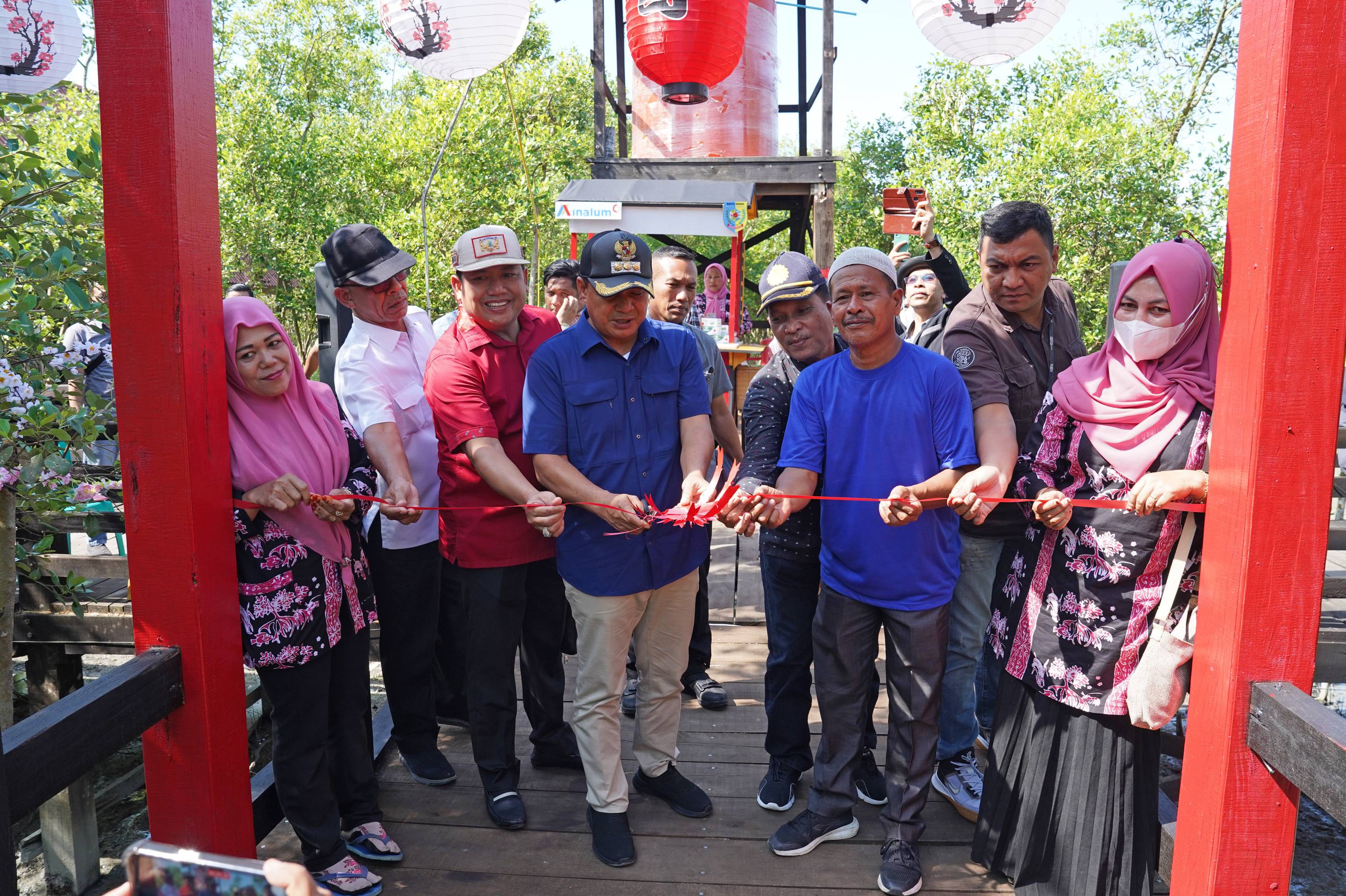 BATU BARA - Bupati Batu Bara Ir. H. Zahir, M.AP., bersama Ketua Kadin Batu Bara H. OK Faizal meresmikan objek wisata Japan Paviliun yang berada di kawasan Pantai Sejarah, Kecamatan Lima Puluh Pesisir, Sabtu (31/12/2022).