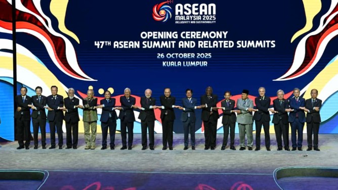 Jakarta Pusat, Komdigi - Presiden Republik Indonesia Prabowo Subianto menghadiri sesi pleno Konferensi Tingkat Tinggi (KTT) ke-47 ASEAN yang digelar di Kuala Lumpur Convention Centre (KLCC), Malaysia, pada Minggu (26/10/2025). Pad...