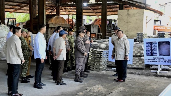Bangka Belitung, Komdigi - Presiden Prabowo Subianto menyaksikan secara langsung Penyerahan Aset Barang Rampasan Negara (BRN) kepada PT Timah Tbk., yang digelar di Smelter PT Tinindo Internusa, Kota Pangkal Pinang, Provinsi Kepulauan Bangka Belitu...
