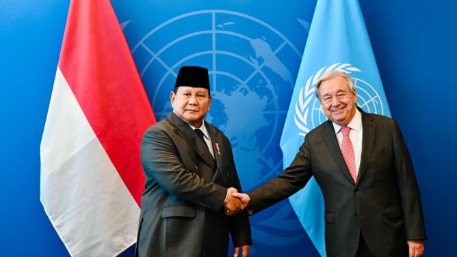 Jakarta Pusat, Komdigi - Presiden Republik Indonesia, Prabowo Subianto melakukan pertemuan bilateral dengan Sekretaris Jenderal Perserikatan Bangsa-Bangsa (PBB), António Guterres, di lantai 27 Gedung Sekretariat PBB, New York, Ame...