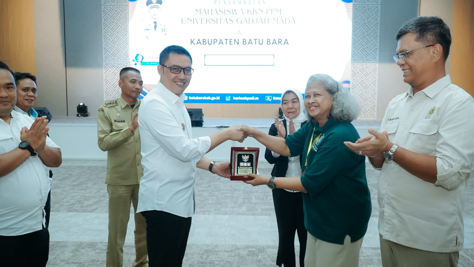 BATU BARA - Penjabat (Pj) Bupati Batu Bara Heri Wahyudi Marpaung, S.STP, M.AP., bersama Sekda Norma Deli Siregar menyambut kedatangan mahasiswa dan mahasiswi Universitas Gajah Mada (UGM) di Aula Kantor Bupati, Kecamatan Lima Puluh, Senin (01/07/20...