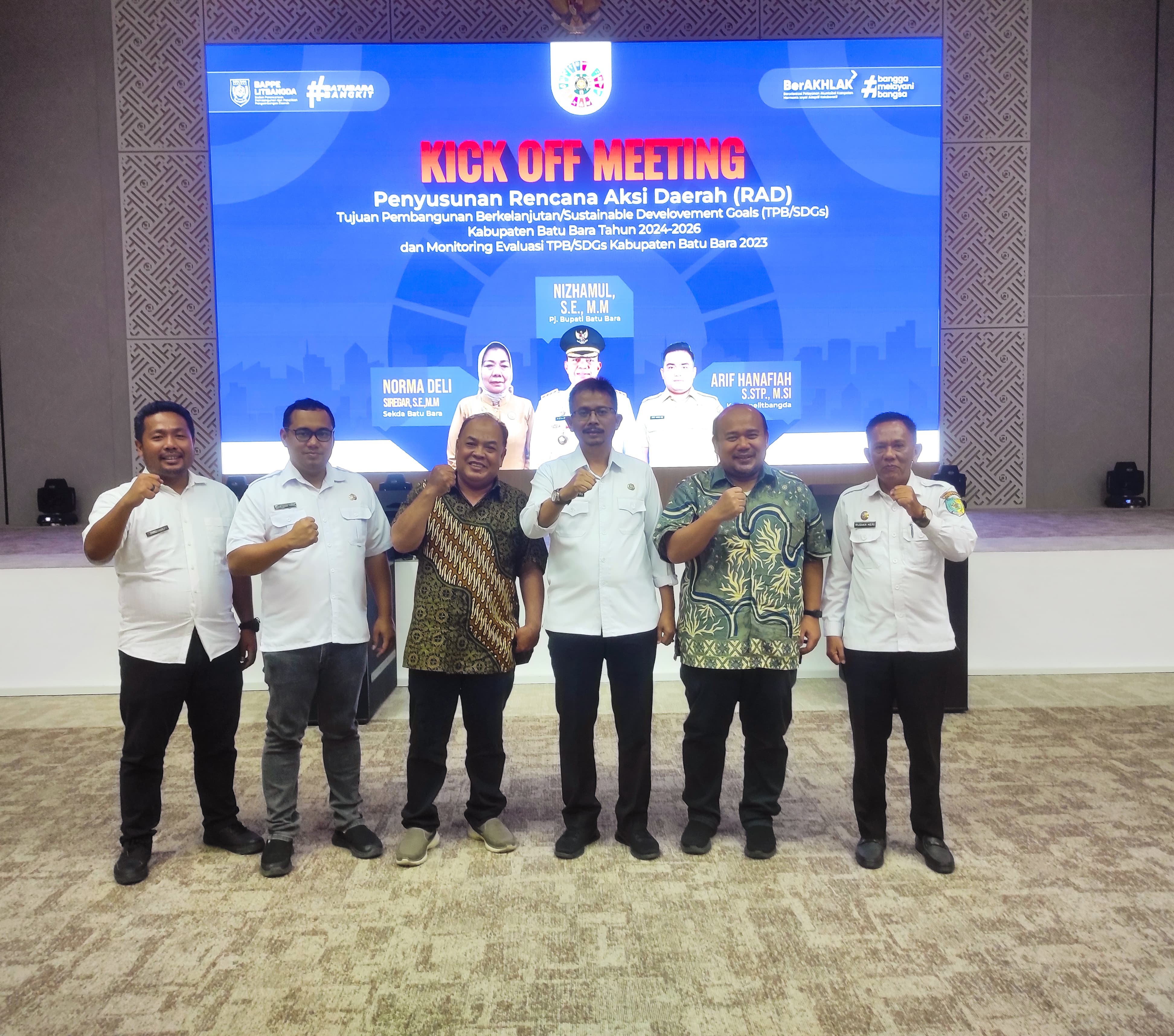 BATU BARA - Penjabat (Pj) Bupati Batu Bara Nizhamul, S.E. M.M., yang diwakili Asisten II Bambang Hadisuprapto membuka kegiatan Kick Off Meeting Penyusunan Rencana Aksi Daerah (RAD) Tujuan Pembangunan Berkelanjutan/Sustainable Development Goals (TP...