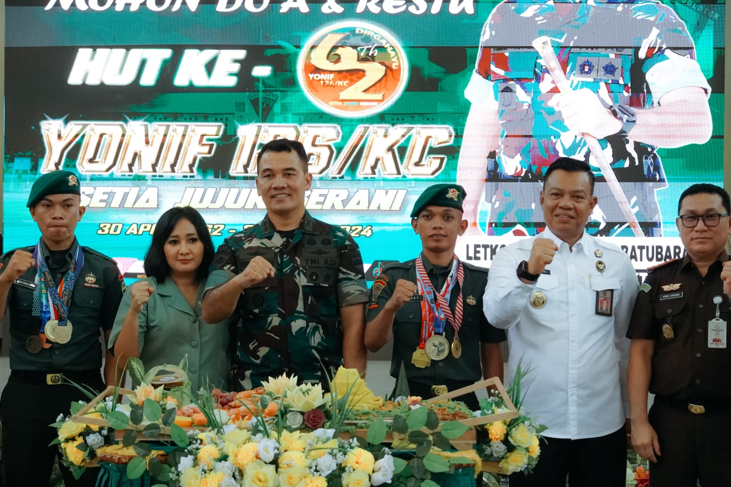 BATU BARA - Penjabat (Pj) Bupati Batu Bara Nizhamul, S.E, M.M menghadiri acara syukuran dalam rangka HUT ke - 62 tahun Batalyon Infanteri 126/Kala Cakti, yang digelar di aula Mayonif 126/KC, Kecamatan Sei Balai, Rabu (15/05/2024).