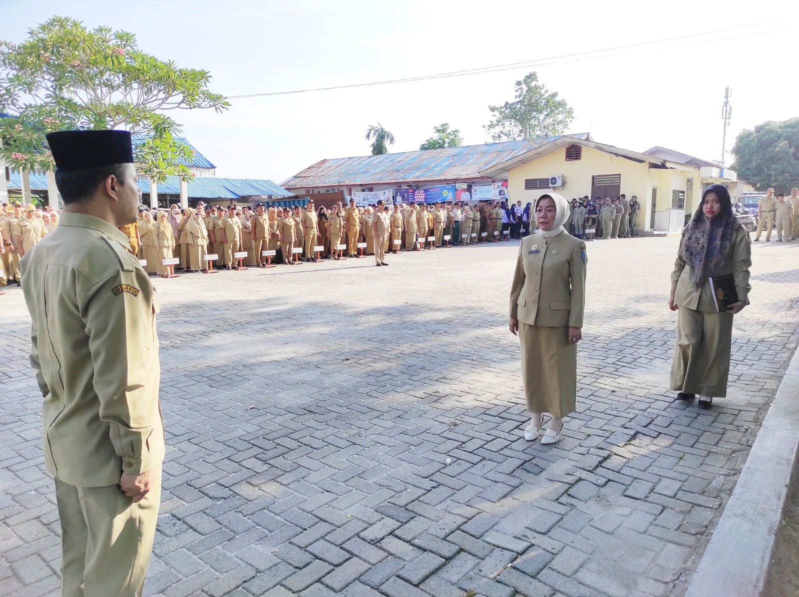 BATU BARA - Pasca libur Hari Raya Idul Fitri 1445 Hijriyah/2024 Masehi, Pemerintah Kabupaten Batu Bara menggelar apel gabungan di halaman Kantor Bupati lama, Kelurahan Lima Puluh Kota, Kecamatan Lima Puluh, Selasa (16/04/2024).