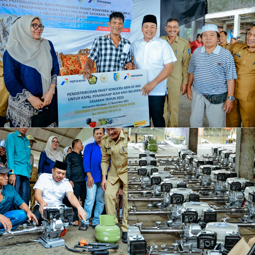 BATU BARA - Guna mengatasi kelangkaan bahan bakar minyak (BBM), Pemerintah Kabupaten Batu Bara menyalurkan 217 paket bantuan mesin konversi BBM ke bahan bakar gas (BBG), tabung gas 3 kg dan oli untuk kapal penangkap ikan bagi nelayan.