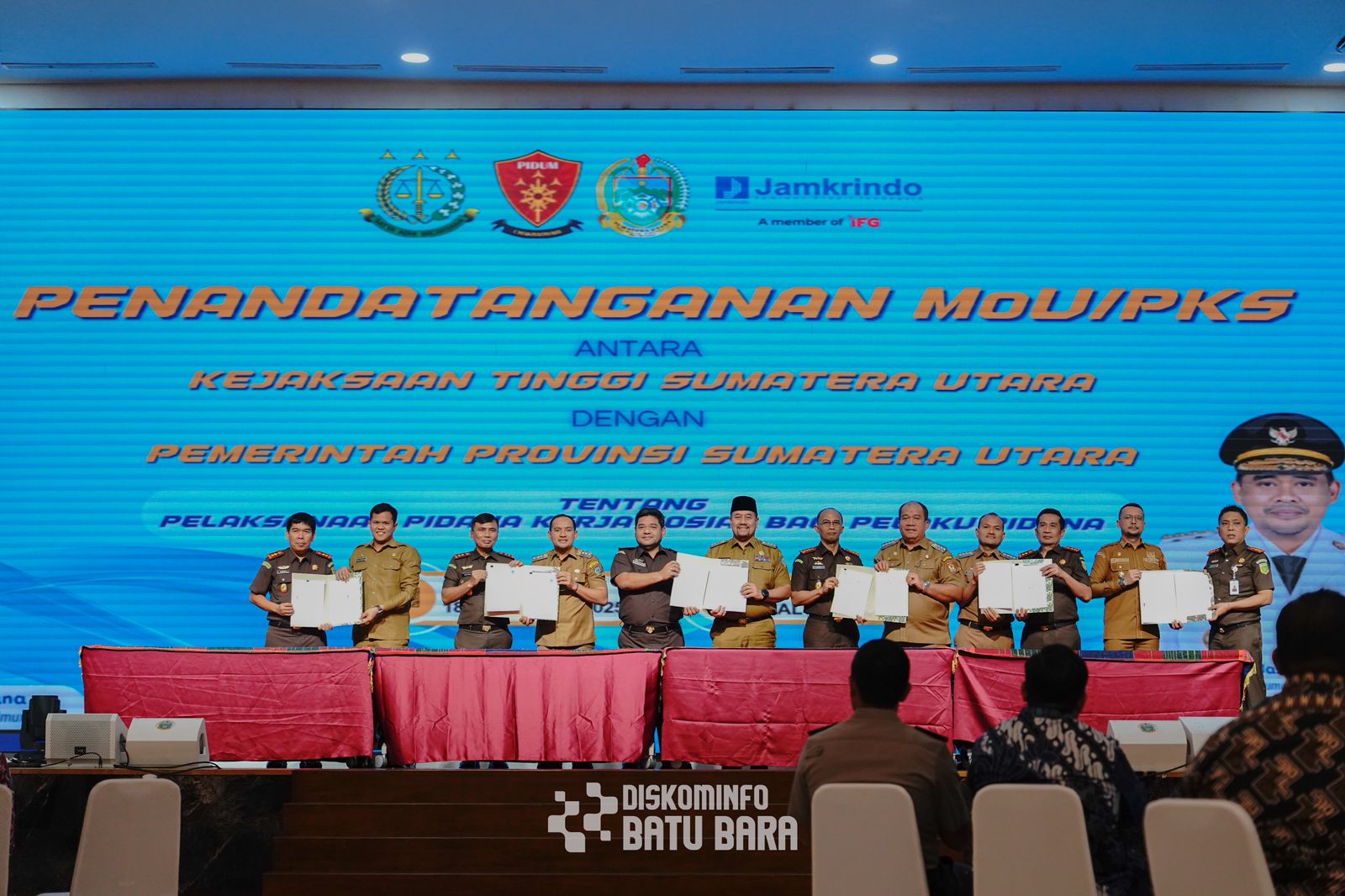 BATU BARA - Bupati Batu Bara H. Baharuddin Siagian, S.H., M.Si menghadiri penandatanganan Memorandum of Understanding (MoU) antara Kejaksaan Tinggi Sumatera Utara dengan Pemerintah Provinsi Sumatera Utara, serta Kejaksaan Negeri se-Sumatera Utara...