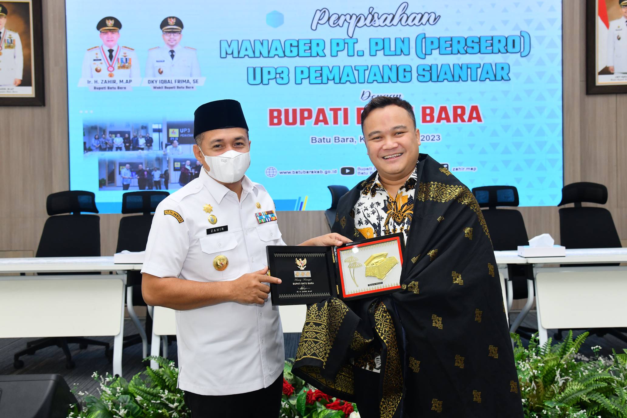 BATU BARA - Bupati Batu Bara Ir. H. Zahir, M.AP., menggelar temu pisah dengan Manajer PT. PLN UP3 Pematangsiantar Petrus Gading Aji. Pada kesempatan tersebut Bupati Zahir menyampaikan terima kasih kepada PT. PLN UP3 Pematangsiantar yang telah cepa...