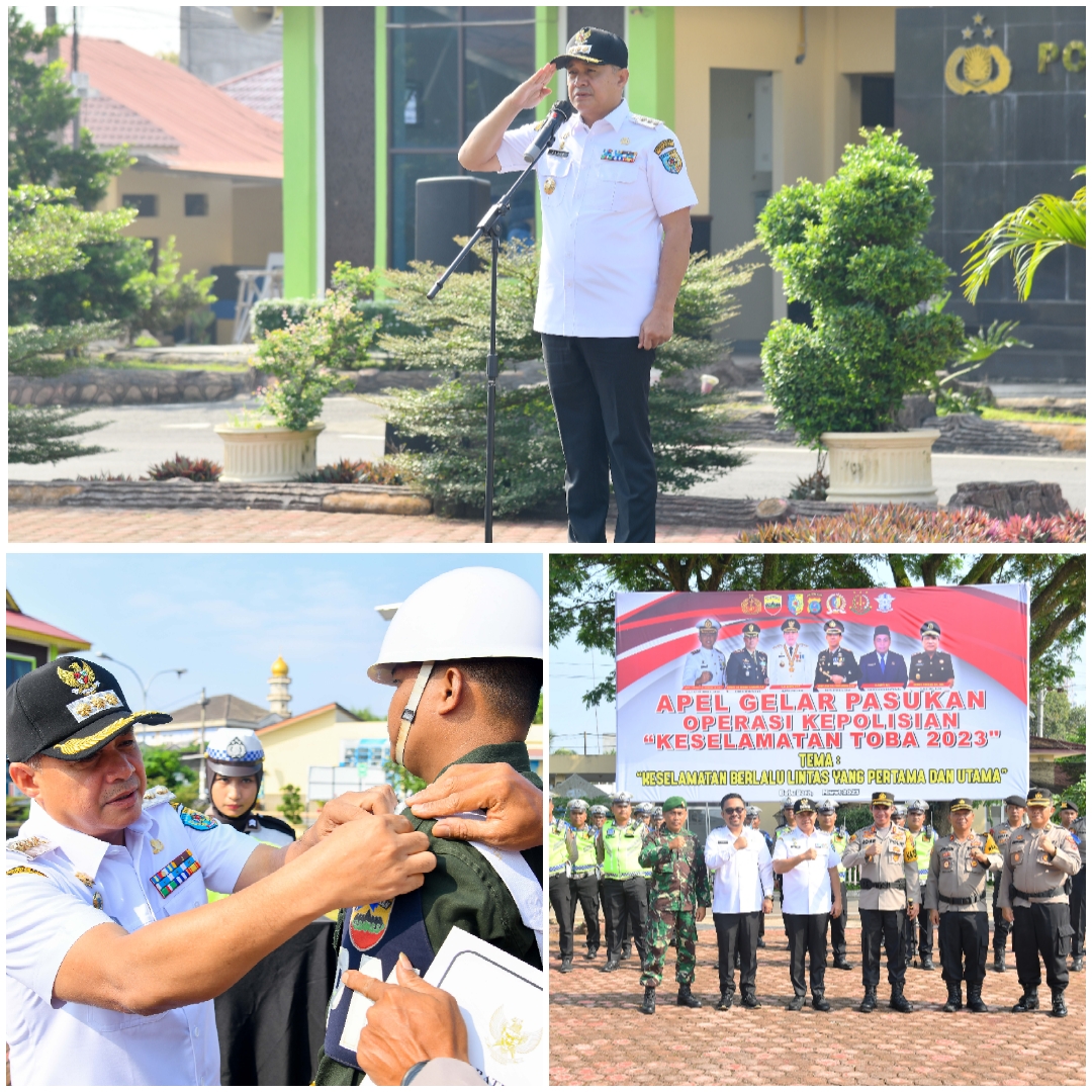 BATU BARA - Bupati Batu Bara Ir. H. Zahir, M.AP., memimpin apel gelar pasukan Operasi Keselamatan Toba 2023 di Lapangan Mapolres Batu Bara, Jl. Perintis Kemerdekaan, Kecamatan Lima Puluh, Batu Bara, Rabu (08/03/2023).