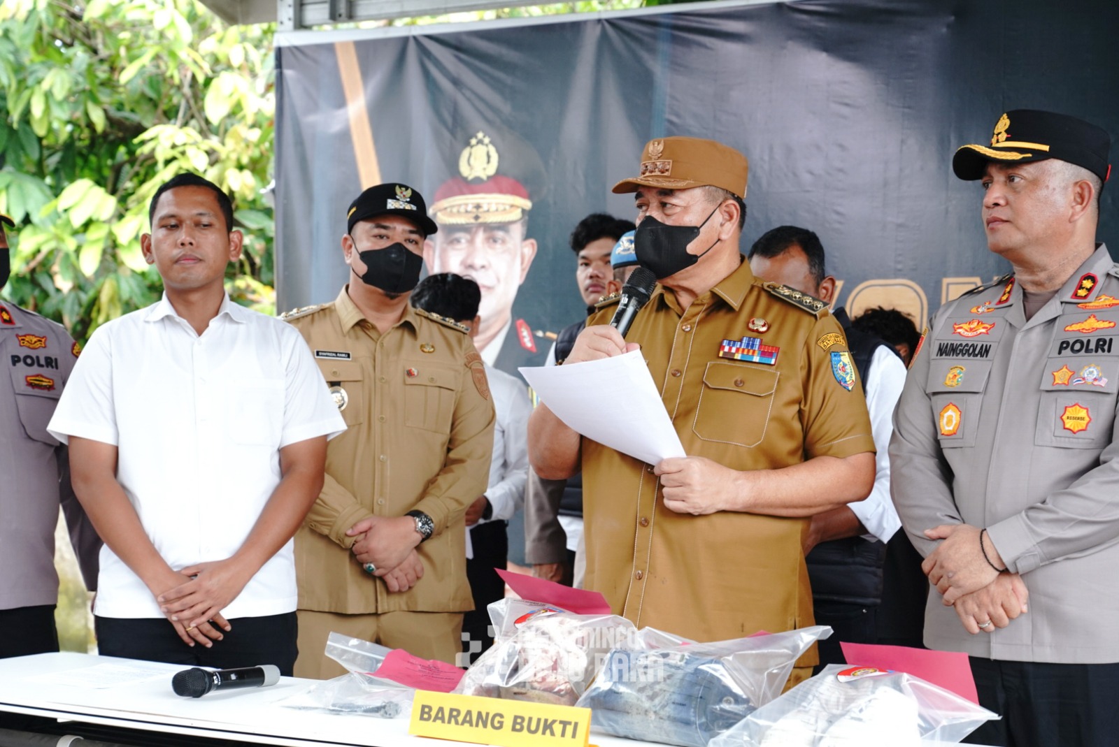 BATUBARA - Bupati Batu Bara Bapak H. Baharuddin Siagian, SH, M.Si menghadiri konferensi pers kasus pembunuhan Almarhum Jasa Sinaga di Halaman Polres Batu Bara, Kecamatan Lima Puluh, Senin (25/08/2025).