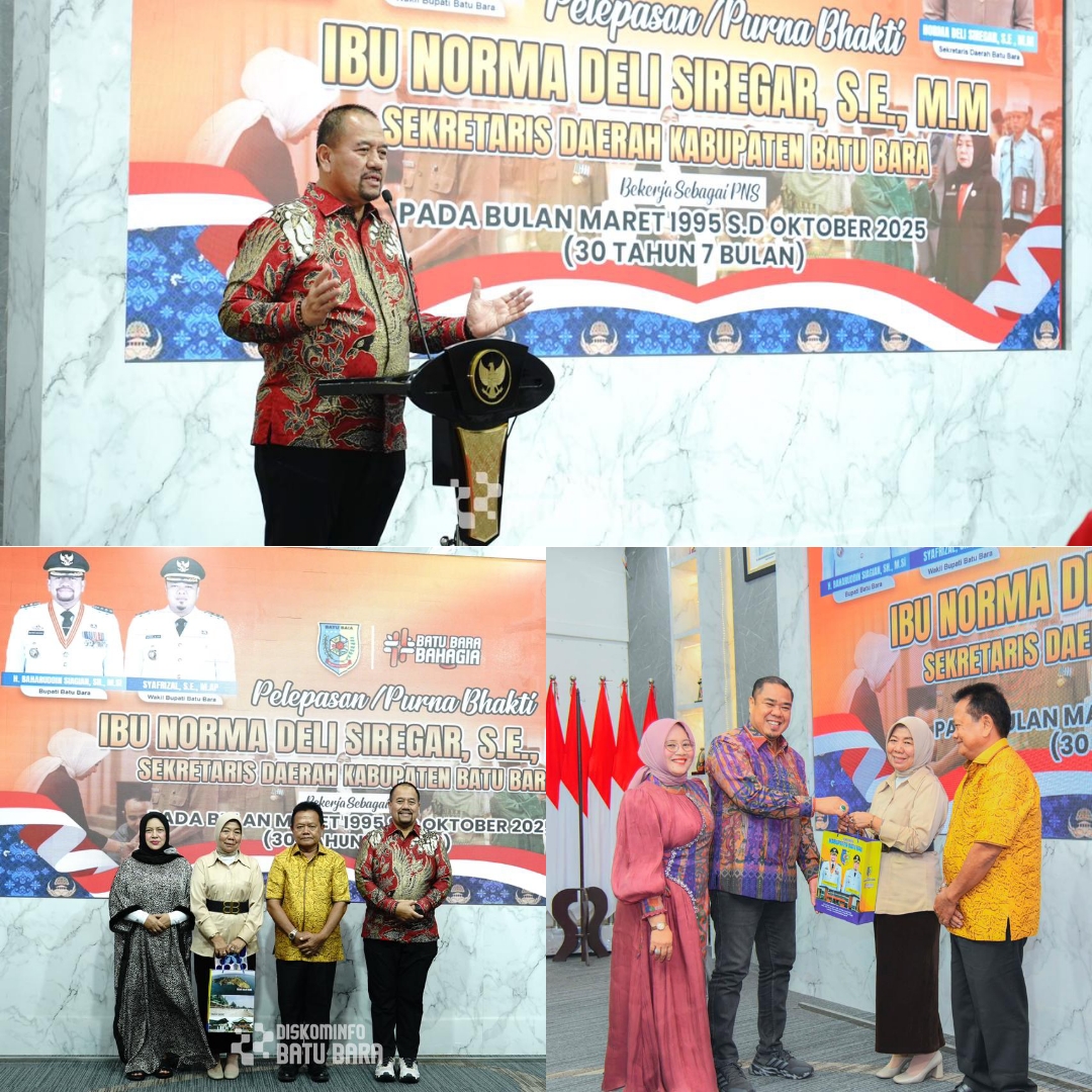 BATU BARA - Suasana haru menyelimuti acara Pelepasan Purna Tugas Sekretaris Daerah (Sekda) Kabupaten Batu Bara, Ibu Norma Deli Siregar, yang digelar di Aula Rumah Dinas Bupati, Tanjung Gading, Kecamatan Sei Suka, Sabtu (1/11/2025).