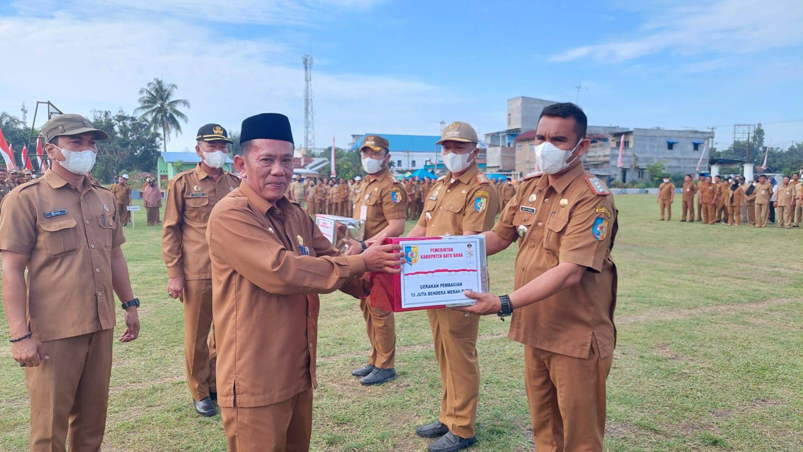 BATU BARA - Jelang peringatan HUT ke 77 Kemerdekaan Republik Indonesia, Pemerintah Kabupaten Batu Bara, Sumatera Utara, membagikan ribuan Bendera Merah Putih, yang merupakan bagian dari gerakan pembagian 10 juta Bendera Merah Putih se-Indonesia.