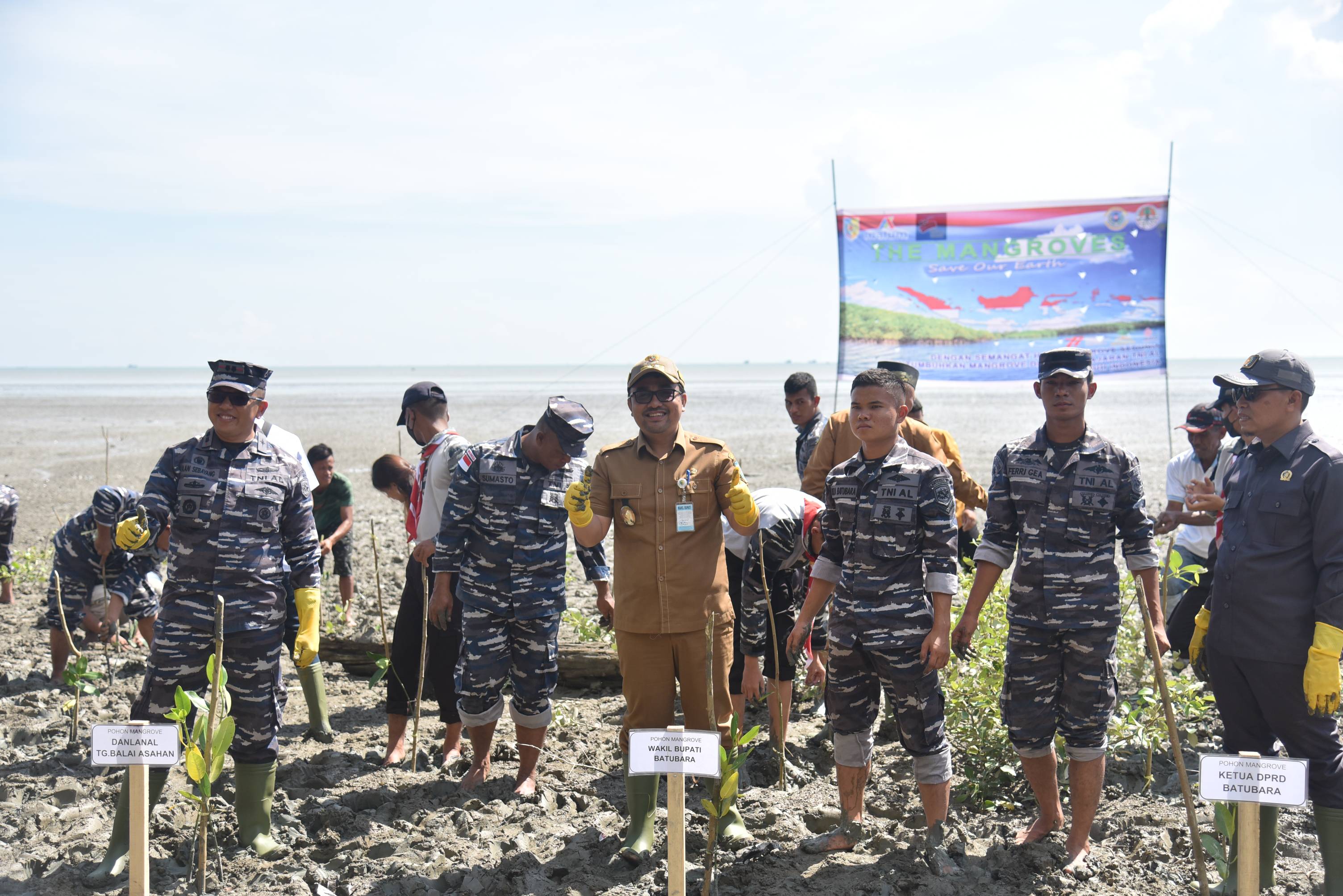 BATU BARA - Pemerintah Kabupaten (Pemkab) Batu Bara, Sumatera Utara, bersama Pangkalan TNI AL (Lanal) Tanjungbalai-Asahan (TBA) melakukan penanaman 5.000 pohon mangrove di Pantai Jono, Desa Lalang, Kecamatan Medang Deras, Kabupaten Batu Bara, Sela...