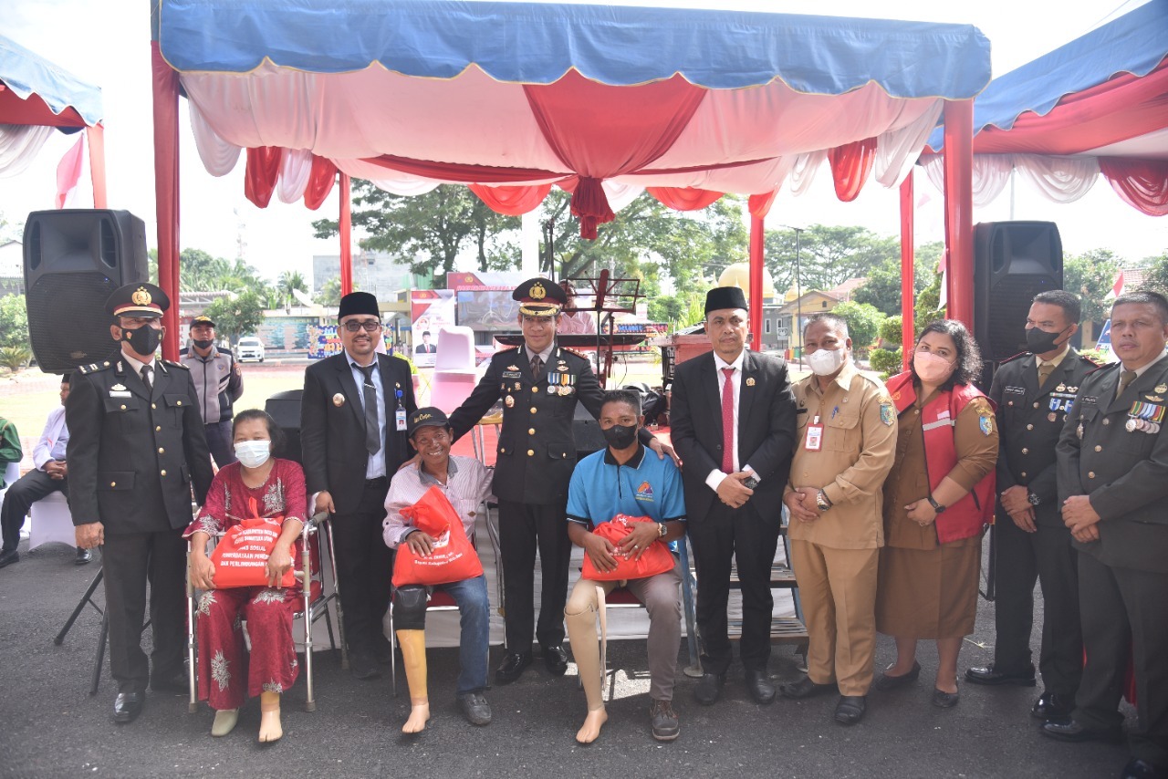 Kepolisian Resor Batu Bara bersama Pemerintah dan Unsur Forkompinda Batu Bara mengikuti upacara perayaan HUT Bhayangkara ke 76 di halaman Mako Polres Batu Bara, Kecamatan Lima Puluh, pada Selasa (05/07/2022).