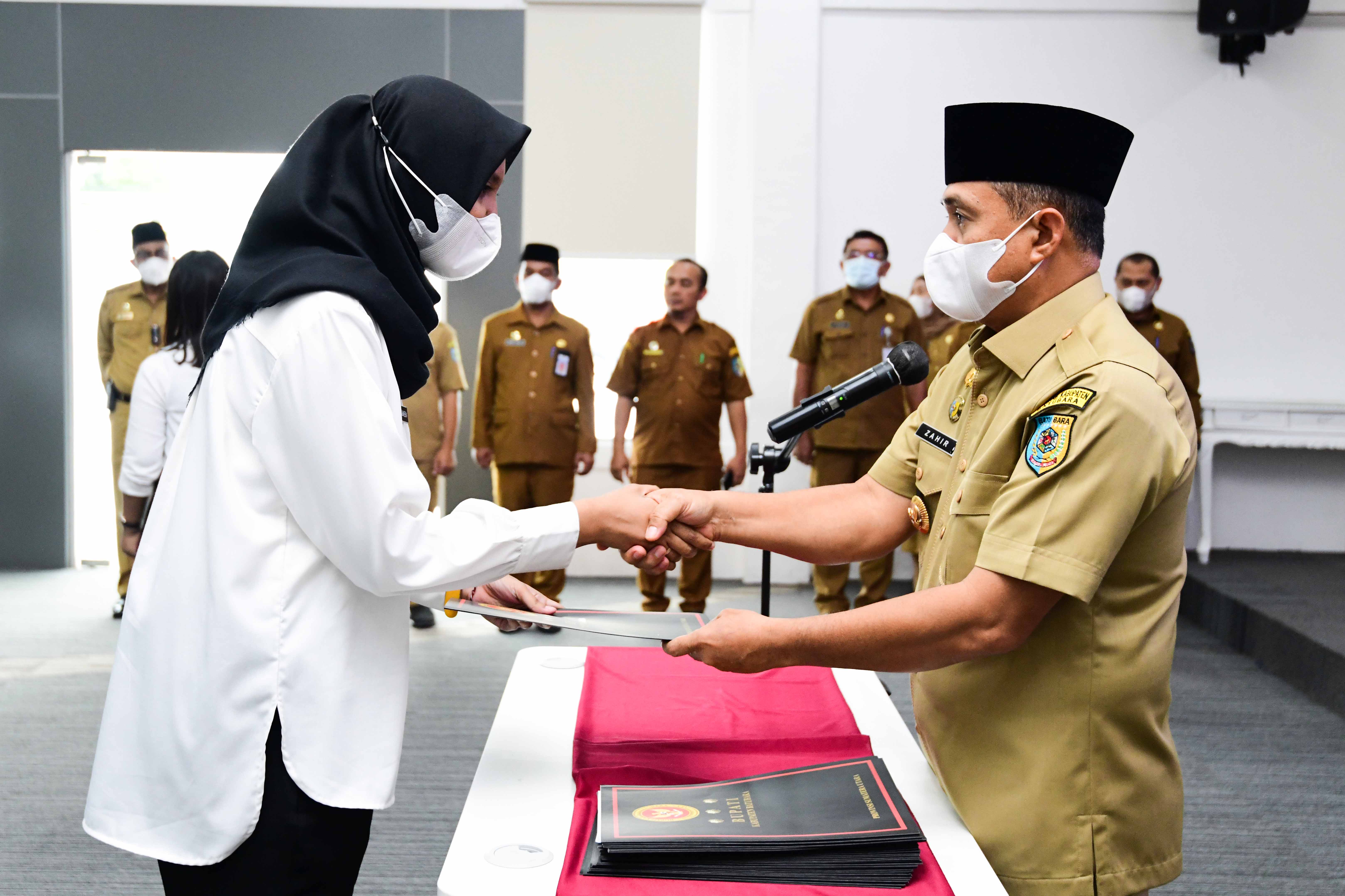 Bupati Batu Bara, Ir. H. Zahir M.AP, resmi menyerahkan Surat Keputusan Pegawai Pemerintah Dengan Perjanjian Kerja (PPPK) dan Calon Pegawai Negeri Sipil (CPNS) di Lingkungan Kabupaten Batu Bara formasi Tahun 2021, di Aula Rumah Di...