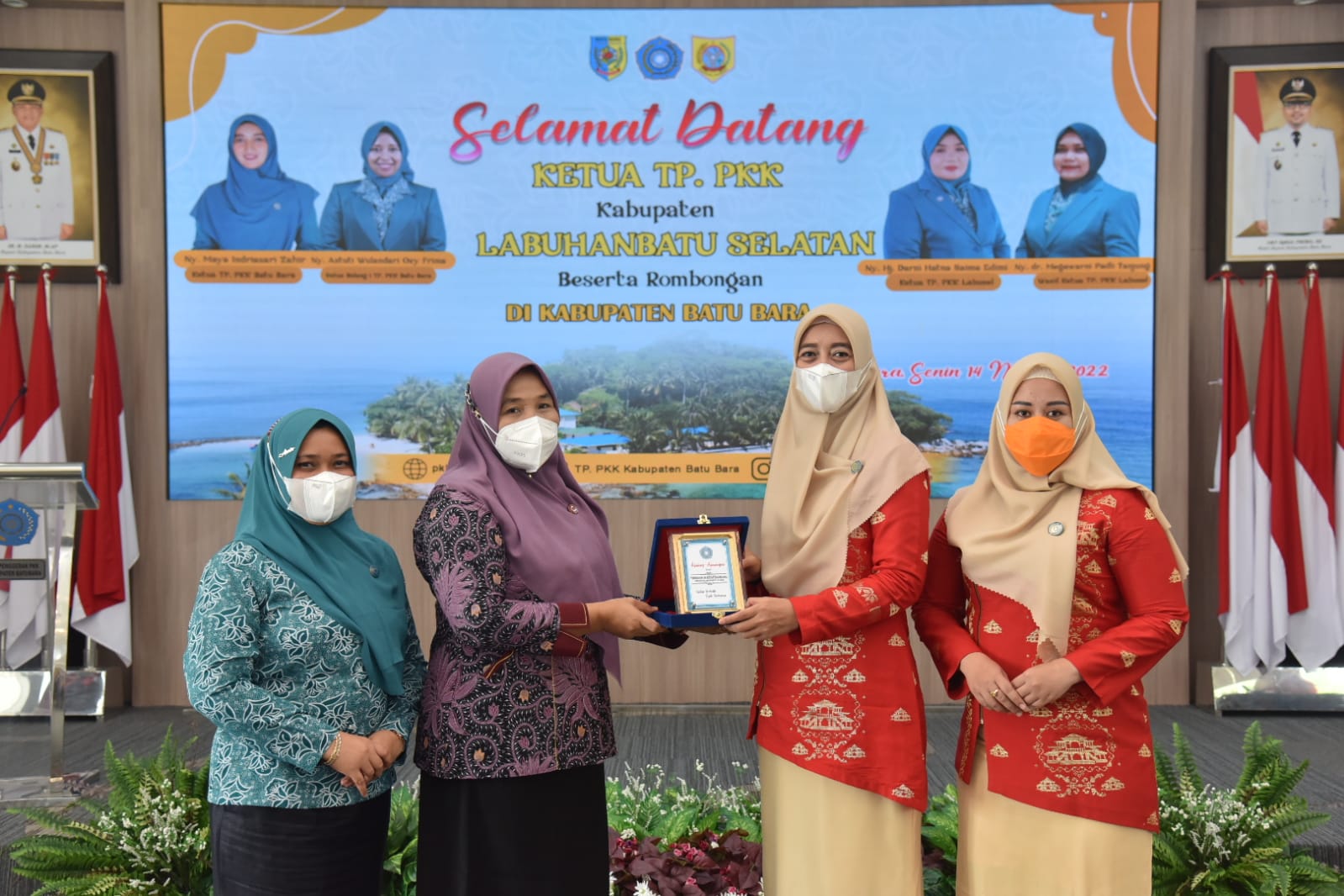 Ketua TP-PKK Kabupaten Batu Bara, Ny. Maya Zahir, menyambut kunjungan TP-PKK dan Dekranasda Labuhan Batu Selatan di Aula Rumah Dinas Bupati, Komplek Inalum, Kecamatan Sei Suka, Senin (14/03/2022).