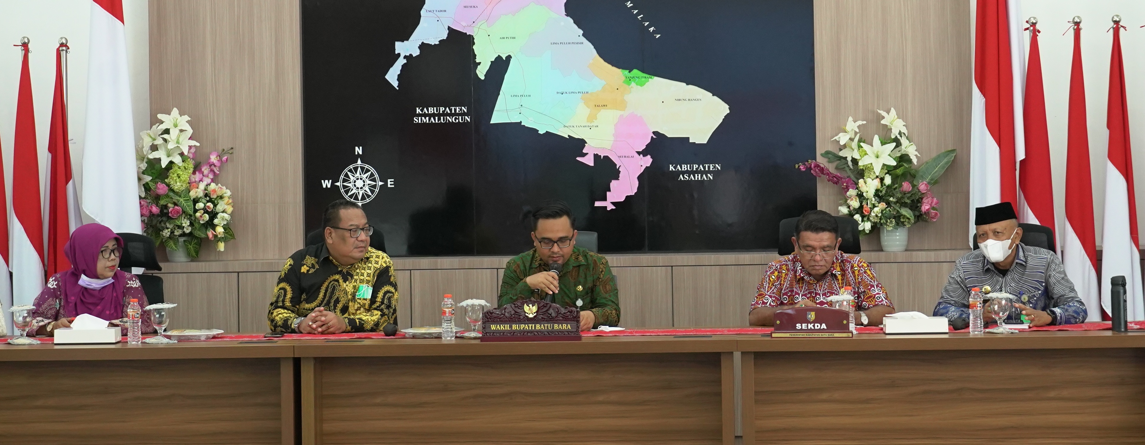 Wakil Bupati Batu Bara Oky Iqbal Frima, didampingi Sekretaris Daerah, H. Sakti Alam Siregar, menerima kunjungan dari Universitas Sumatera Utara (USU), di Aula Rumah Dinas Bupati, Komplek Tanjung Gading, Jumat (11/03/2022). <...