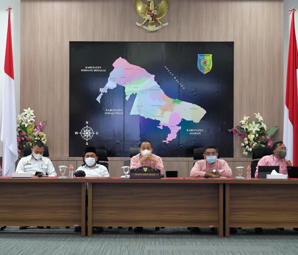 Bupati Batu Bara Ir. H. Zahir, M.AP, bersama Satgas Covid Kabupaten Batu Bara dan perwakilan PT. Pos Indonesia, mengadakan rapat koordinasi terkait penyaluran Bantuan Pangan Non Tunai (BPNT) dan percepatan vaksinasi di Kabu...