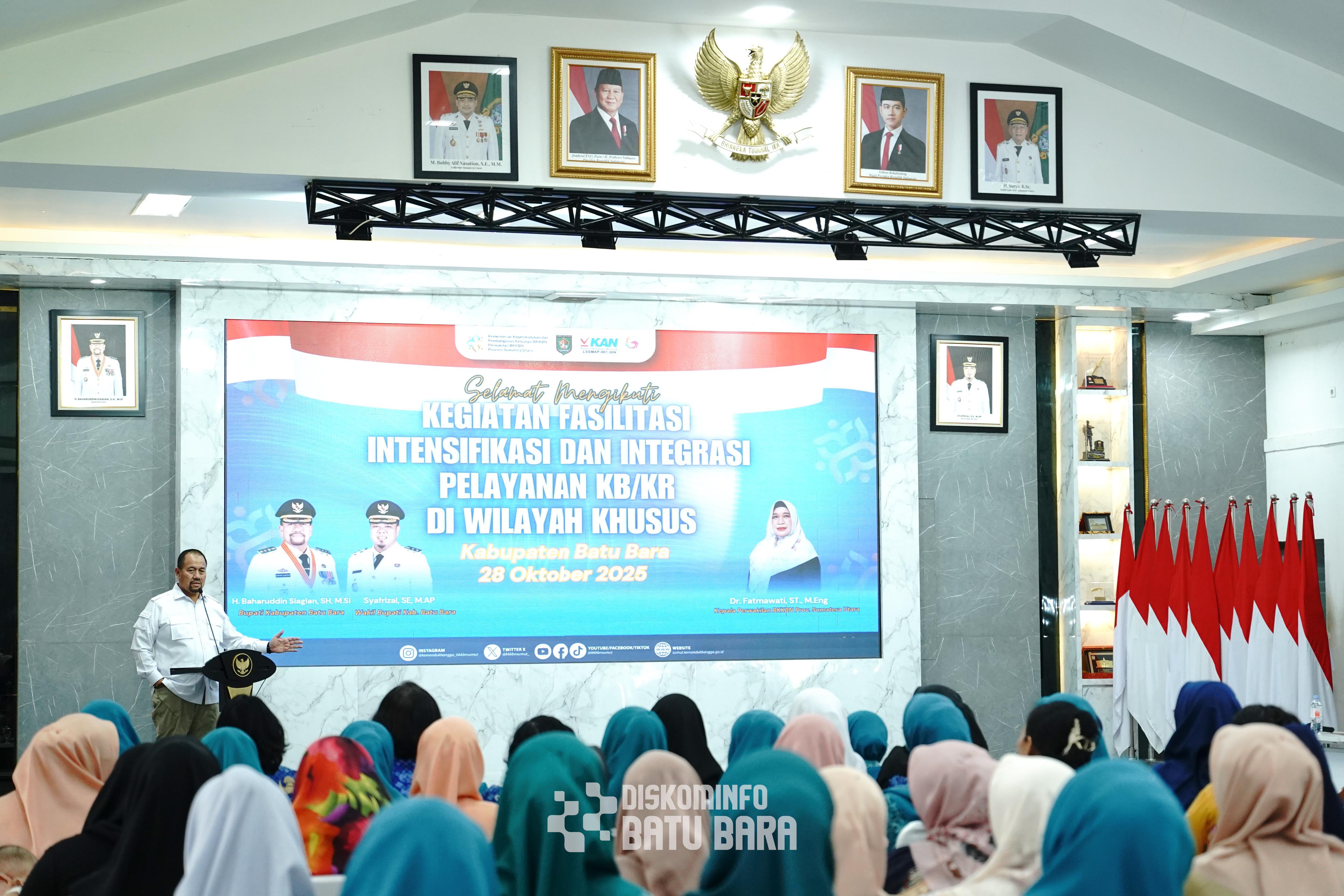 BATU BARA - Bupati Batu Bara, Bapak H. Baharuddin Siagian, SH, M.Si, menghadiri kegiatan Fasilitasi Intensifikasi dan Integrasi Pelayanan Keluarga Berencana dan Kesehatan Reproduksi (KB/KR) di Wilayah Khusus yang dilaksanakan di Aula Rumah Dinas B...