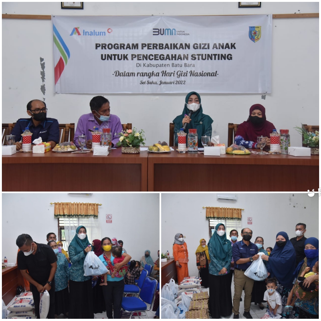 Ketua TP-PKK Ny. Maya Indriasari Zahir yang juga Bunda PAUD Kabupaten Batu Bara Bersama Kepala Seksi Pemberdayaan Masyarakat PT. Inalum Ali Hasian Harahap menyerahkan bantuan sembako dan asupan makanan tambahan gizi kepada masyar...