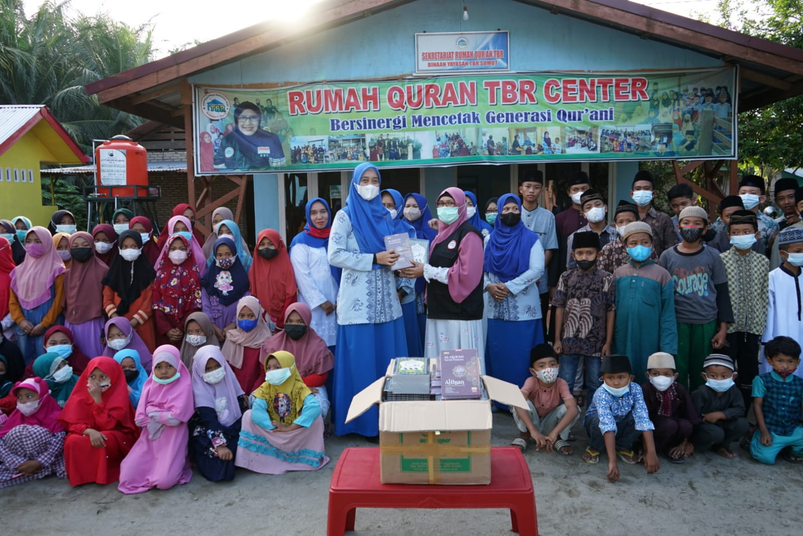 Ketua DPD Muslimat Al-Ittihadiyah Kabupaten Batu Bara Ny. Maya Indriasari Zahir bersama Pengurus Muslimat Al-Ittihadiyah bersilaturahmi ke Rumah Qur\'an TBR Center di Desa Brohol Dusun V, Kecamatan Sei Suka, Selasa (28/12/2021).&...