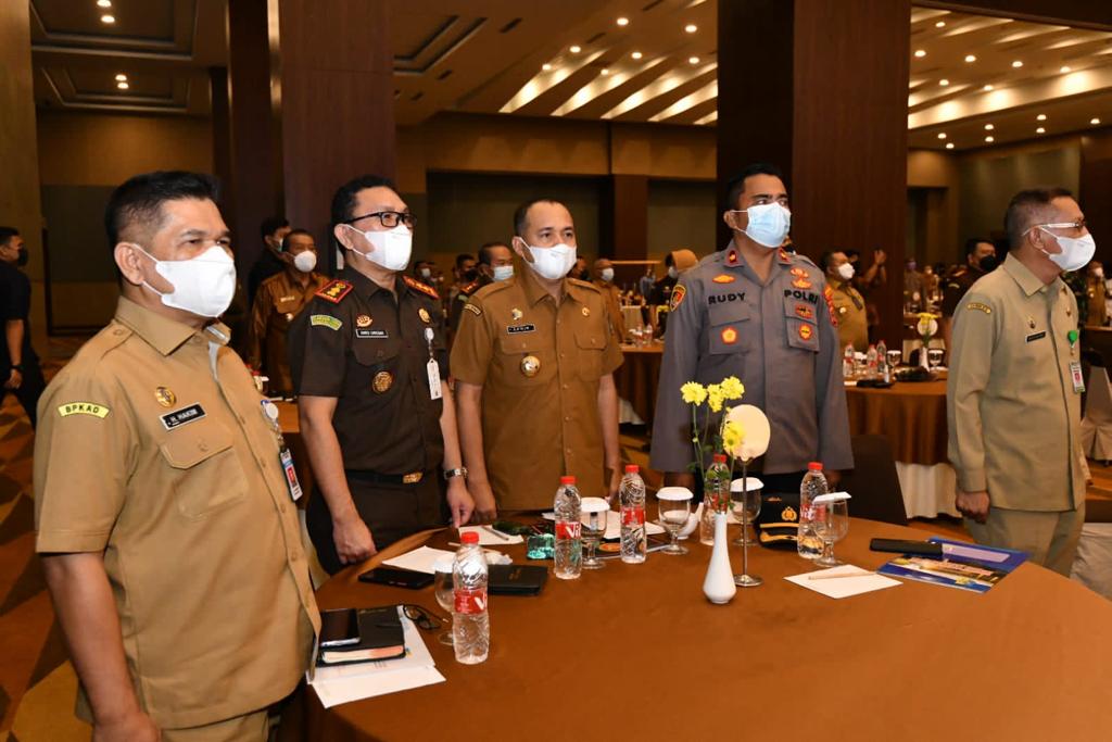 Pemerintah Provinsi Sumatera Utara melalui Badan Pengelola Keuangan dan Aset Daerah bersama Forkopimda Sumatera Utara melakukan asistensi pengelolaan keuangan terkait percepatan penyerapan anggaran dan evaluasi PPKM di Santika Co...