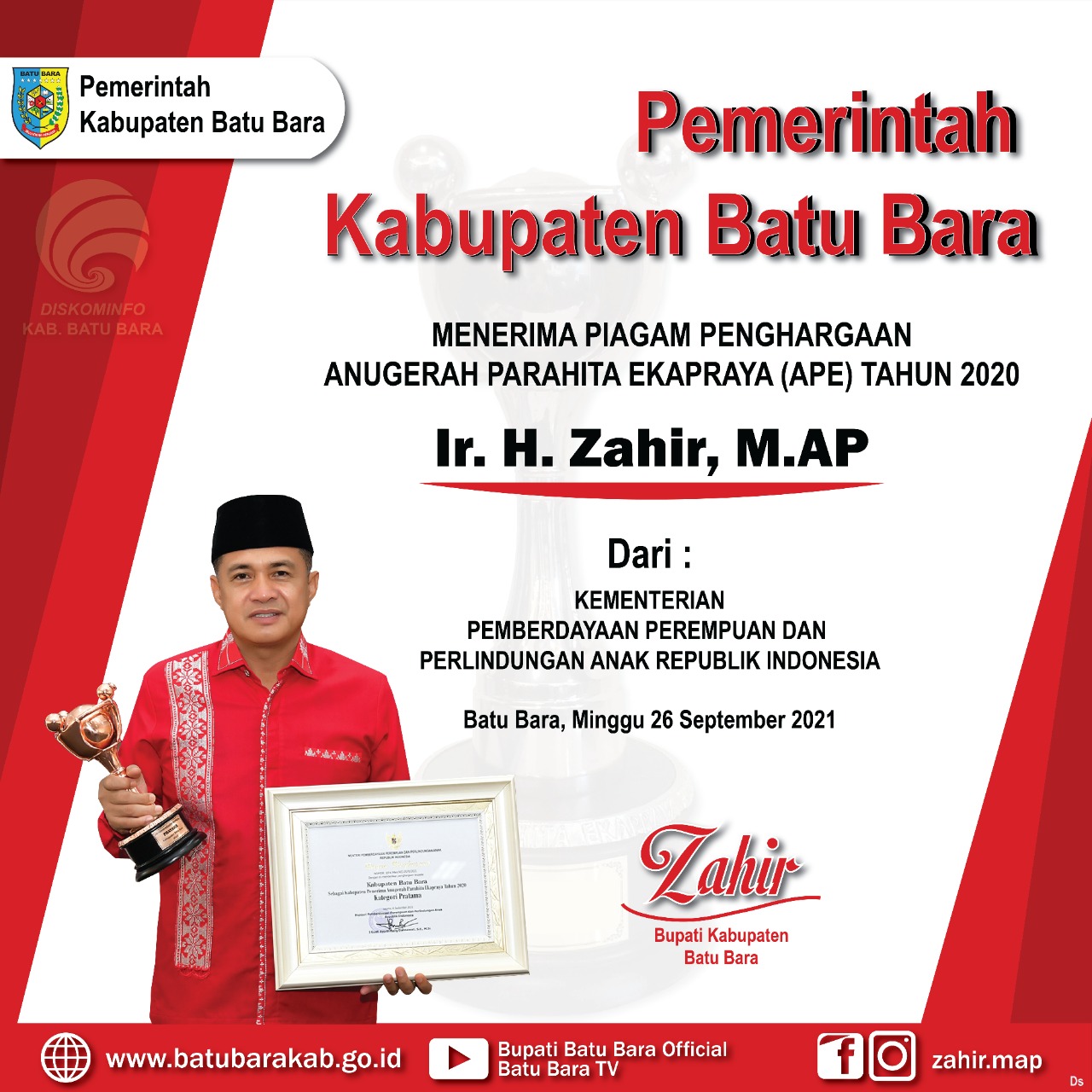 Pemerintah Kabupaten Batu Bara memperoleh Anugerah Parahita Ekapraya 2020 dalam kategori Pratama dari Kementerian Pemberdayaan Perempuan dan Perlindungan Anak Republik Indonesia.