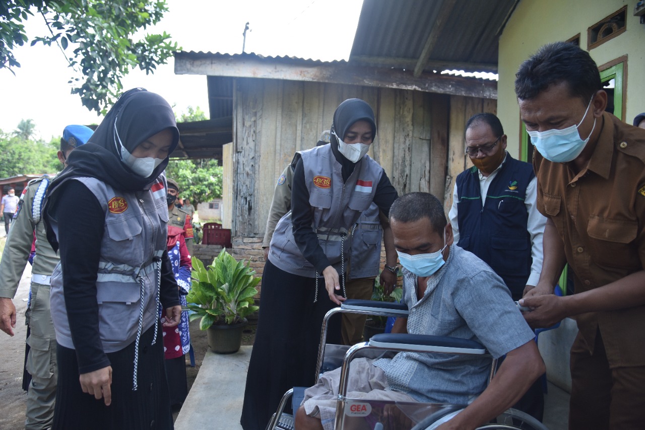 Ny. Maya Indriasari Zahir selaku Ketua Badan Koordinasi Kegiatan Kesejahteraan Sosial (BK3S) mengunjungi rumah penyandang disabilitas di Desa Petatal, Kecamatan Datuk Tanah Datar, Kabupaten Batu Bara, Sumatera Utara, Selasa (28/0...