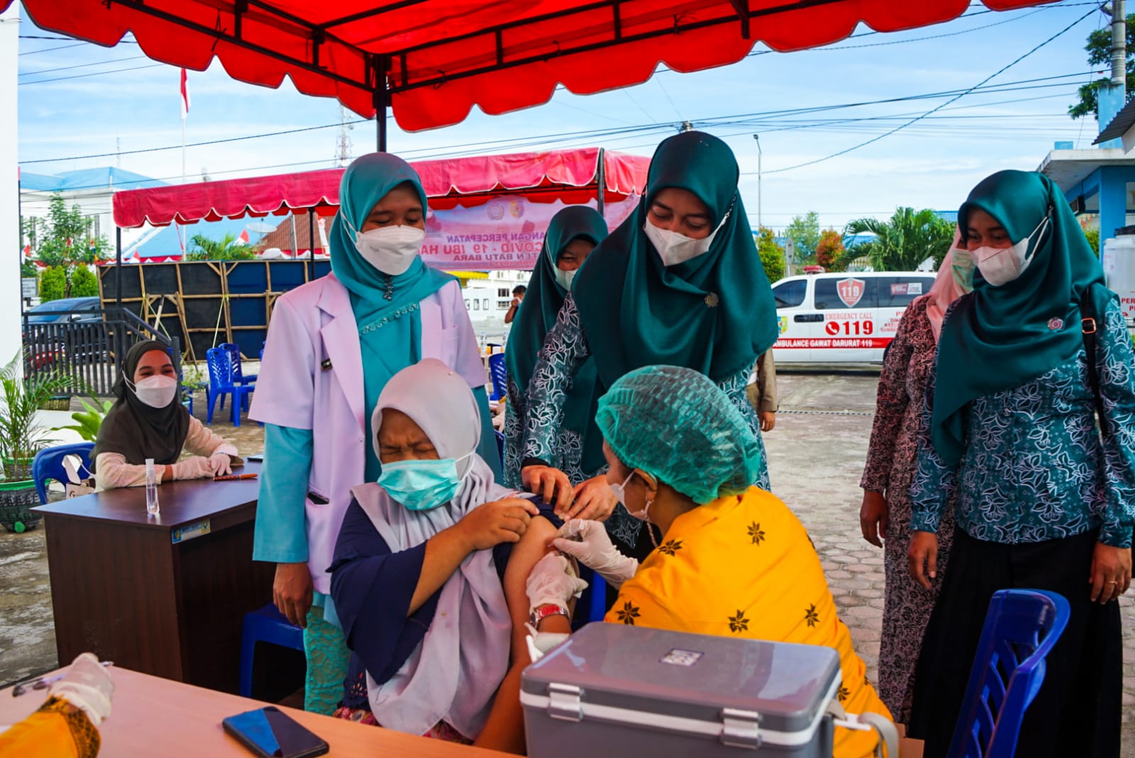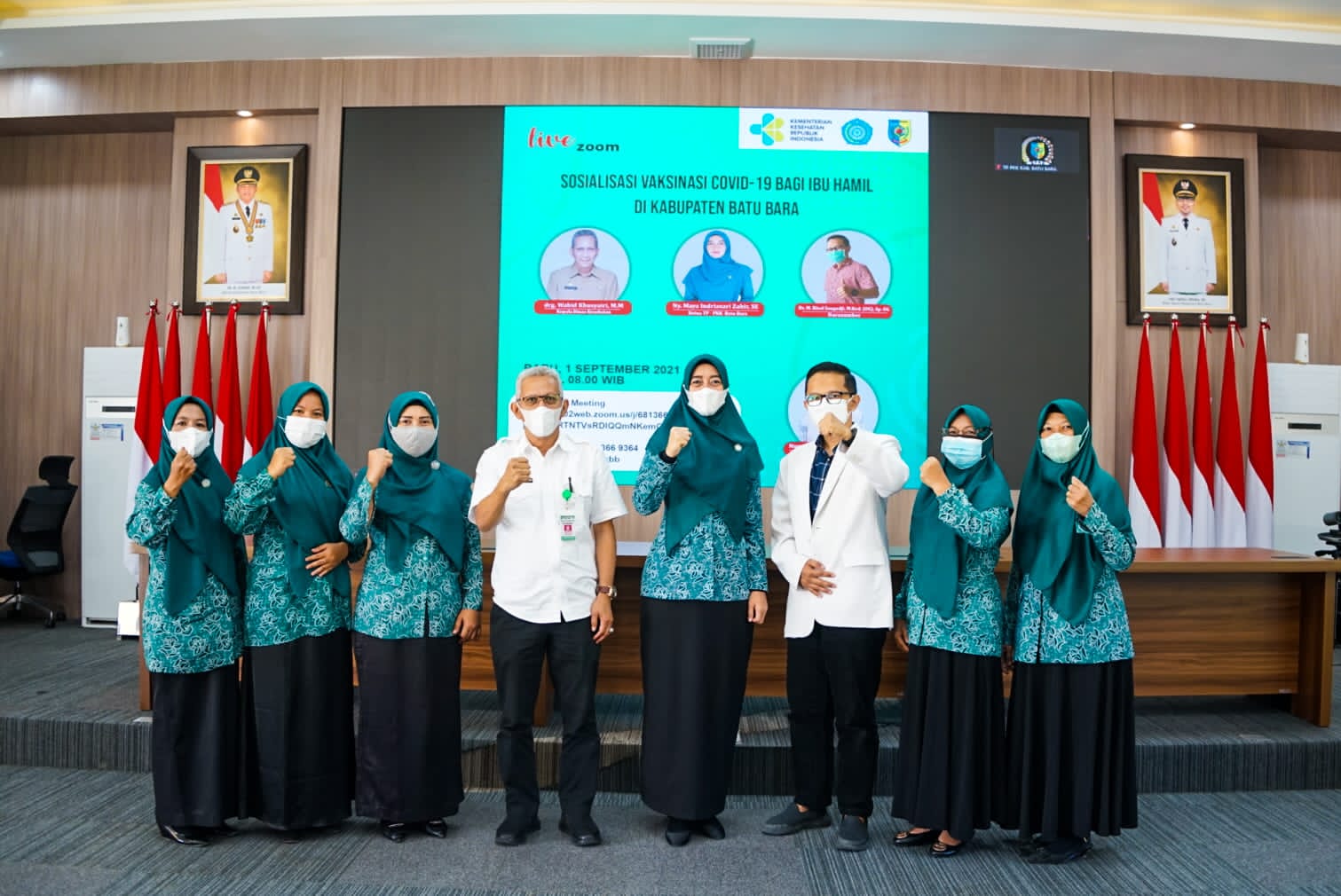 Ketua TP PKK Kabupaten Batu Bara Ny Maya Indriasari Zahir. SE di dampingi Kepala Dinas Kesehatan drg. Wahid Khusyairi, M.M dan dokter spesialis kandungan dr.M. Rizal Sangadji, M.Ked. (OG), Sp. OG mensosialisasikan vaksinasi...