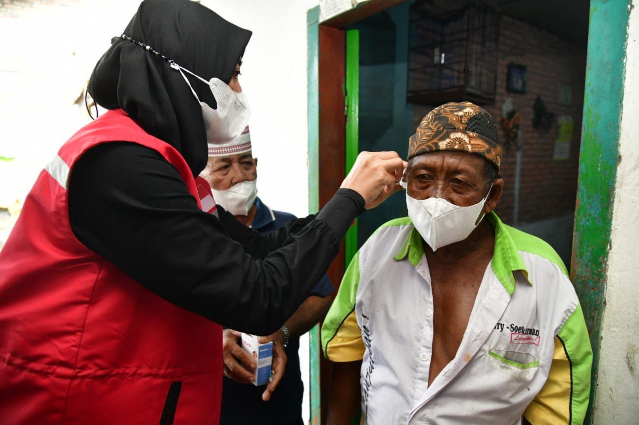 Ny. Maya Indriasari Zahir selaku Ketua BK3S yang didampingi Camat Medang Deras Effendi, mengunjungi rumah penyandang disabilitas yang ada di Desa Nenas Siam, Kecamatan Medang Deras, Kabupaten Batu Bara, Kamis, (02/09/2021).