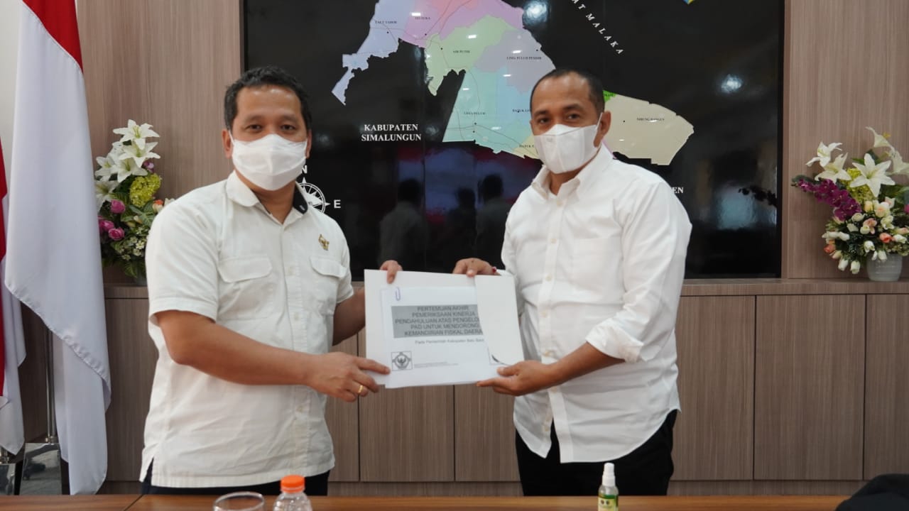 Bupati Batu Bara Ir. H. Zahir, M.AP didampingi Asisten 3 Renold Asmara menerima exit Tim Badan Pemeriksa Keuangan Republik Indonesia Perwakilan Provinsi Sumatera Utara. Di Aula Rumah Dinas Bupati, Tanjung Gading,Senin (30/08/2021...