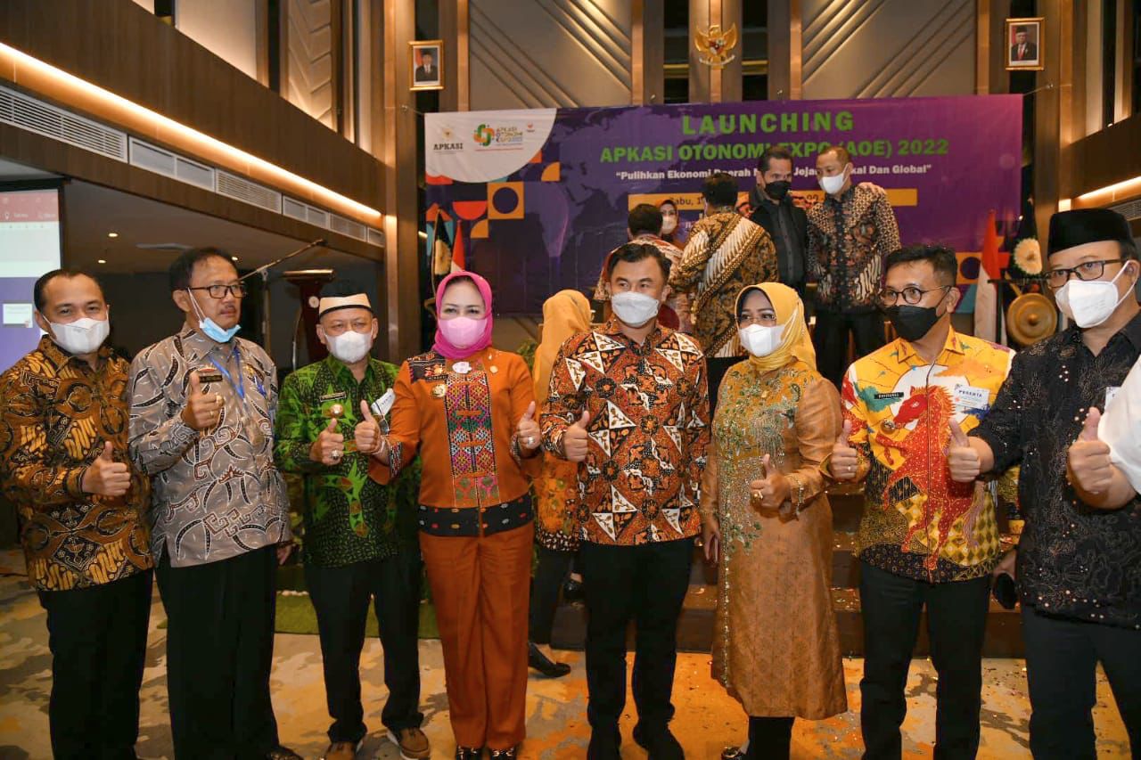 Puluhan Kepala Daerah seluruh Indonesia yang tergabung dalam Asosiasi Pemerintah Kabupaten Seluruh Indonesia ( APKASI ) mengikuti kegiatan Peluncuran Apkasi Otonomi Expo 2022 yang berlangsung di Aula Pertemuan Le Polonia Ho...