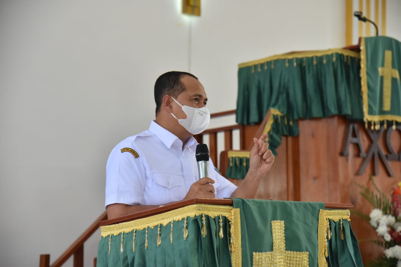 Bupati Batu Bara Ir. H. Zahir menyambut kedatangan Pastoral Ephorus HKBP, Bapak Pendeta DR. ROBINSON BUTAR-BUTAR. Di Gereja HKBP Tebing Tinggi, Resort Tebing Tinggi. Kamis (12/08/2021).