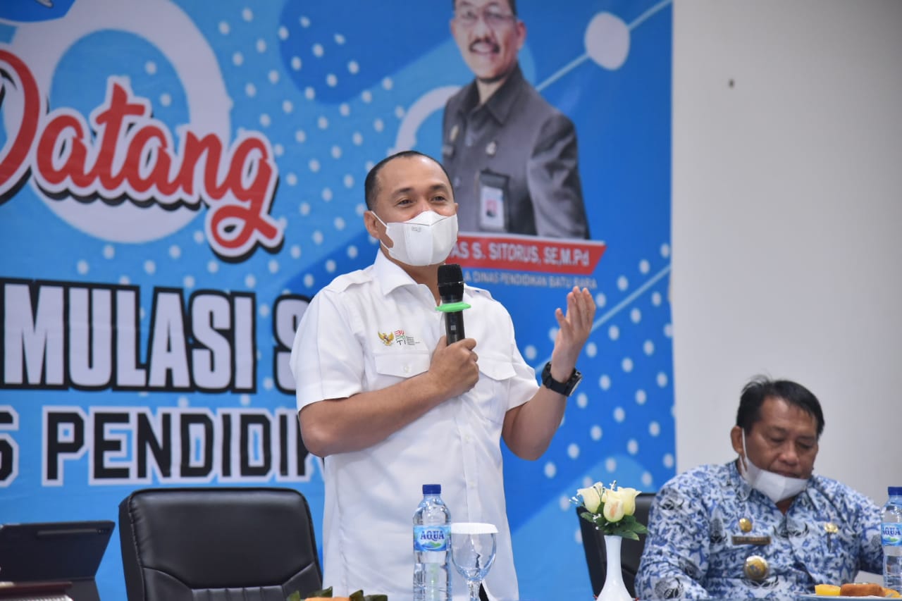 Bupati Batu Bara Ir. H. Zahir, M.AP didampingi Kadis Pendidikan Ilyas Sitorus dan Camat Sei Balai Krt. Hanafi menghadiri acara Sosialisasi dan Simulasi SIPLah. Ballroom Hotel Singapore Land. Kamis (17/06/2021).